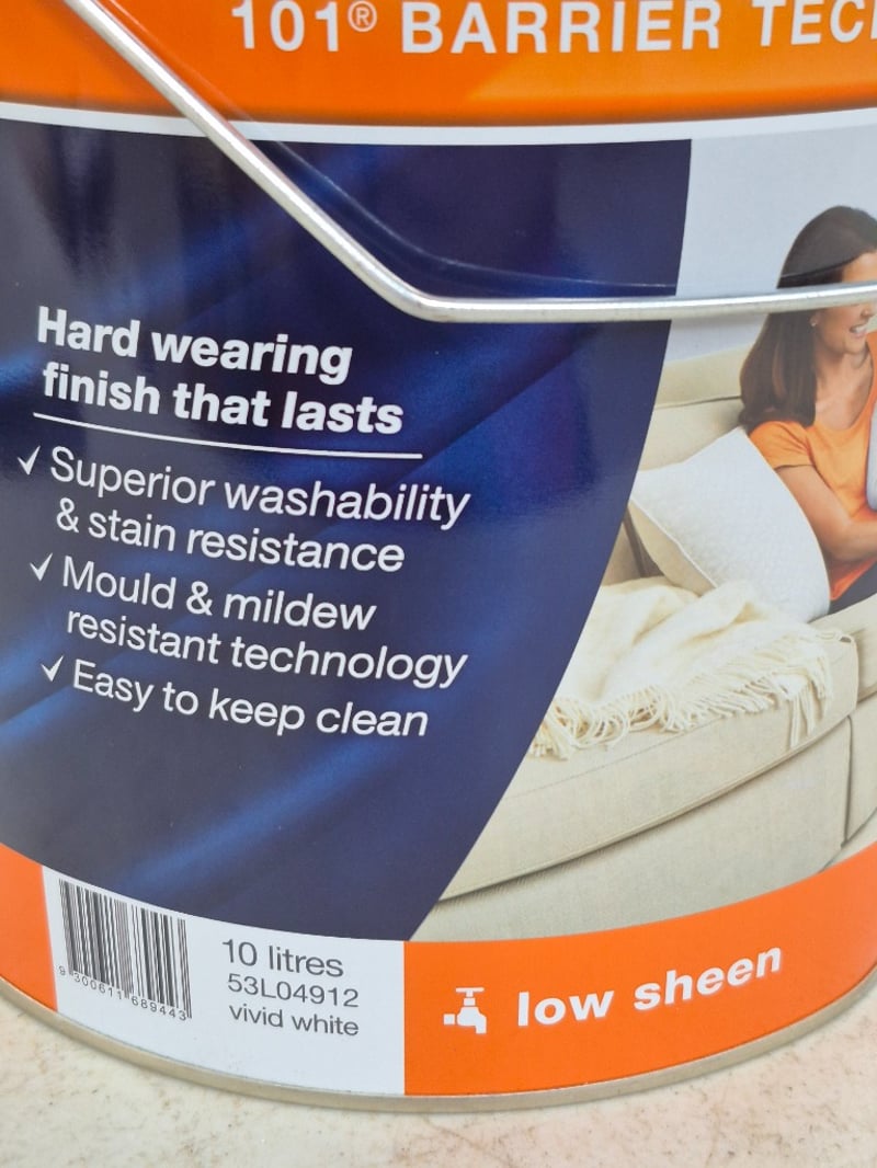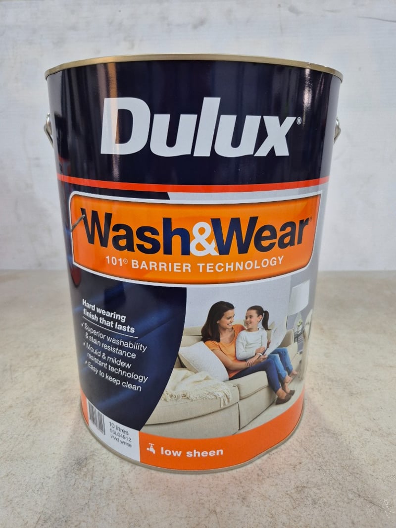 Paint, Dulux Wash & Wear, Low Sheen, Vivid White 10 L