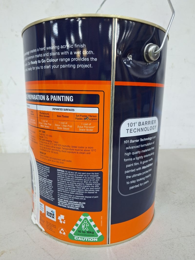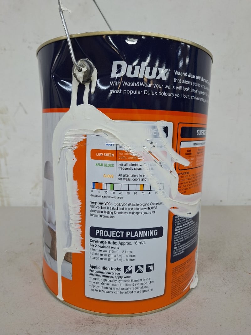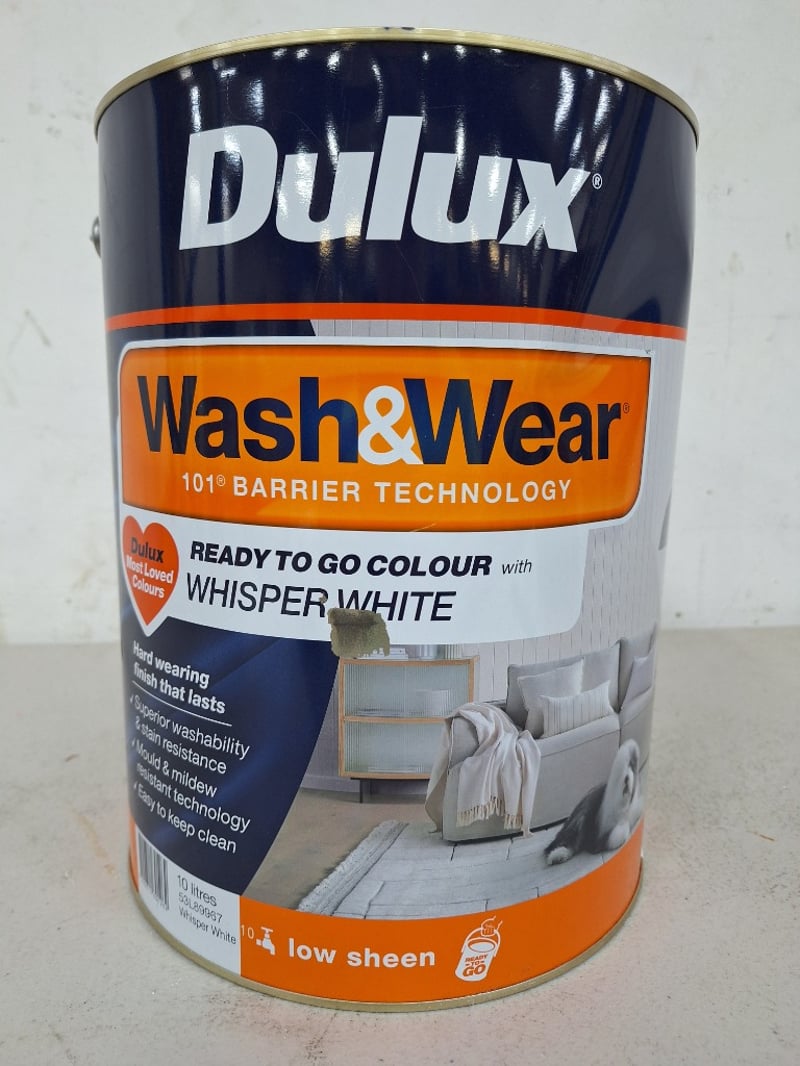 Paint, Dulux Wash & Wear 101 Barrier Technology, Low Sheen, Whisper White 10L