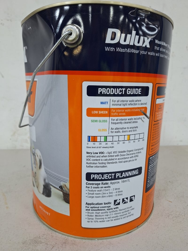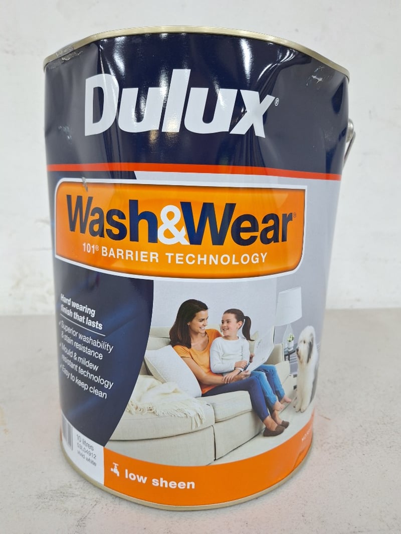 Paint, Dulux Wash & Wear 101 Barrier Technology, Low Sheen, Vivid White 10LBID PER LITRE, MUST TAKE 10 LITRES