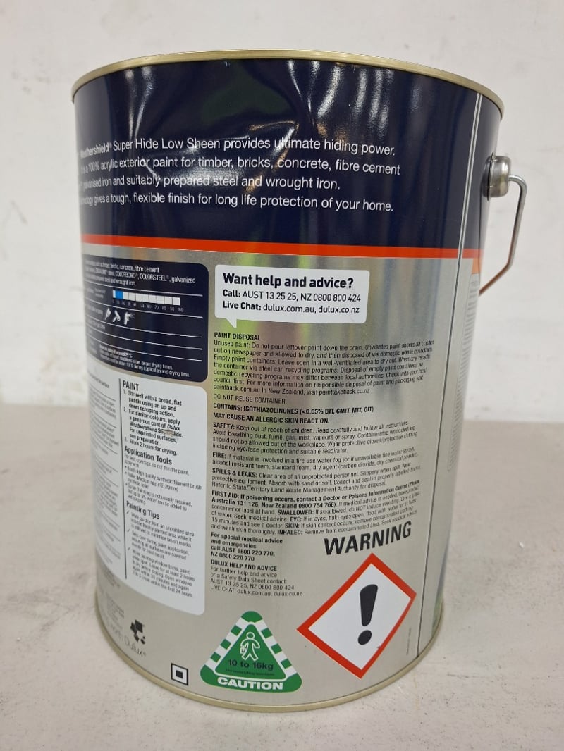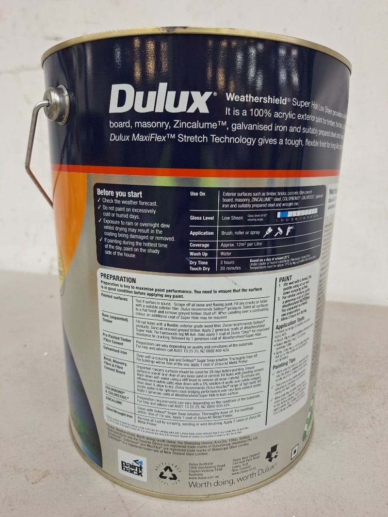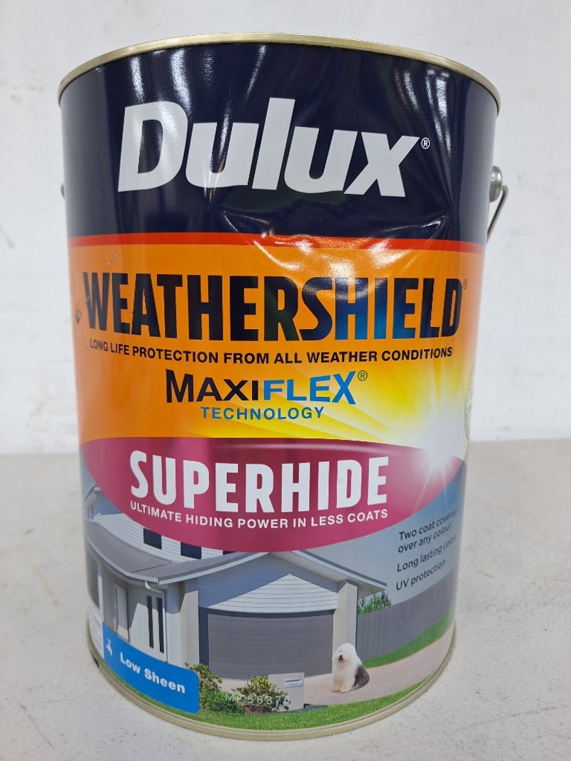 Paint, Dulux WeatherShield, Superhide, Low Sheen, Bold White 10LBID PER LITRE, MUST TAKE 10 LITRES