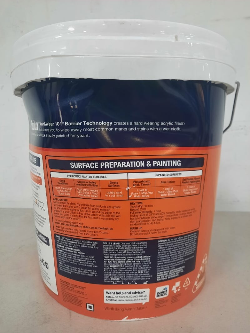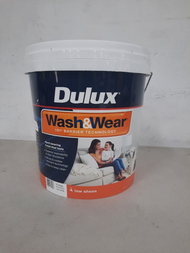 Paint, Dulux Wash and Wear, Low Sheen Vivid White 15 Litres