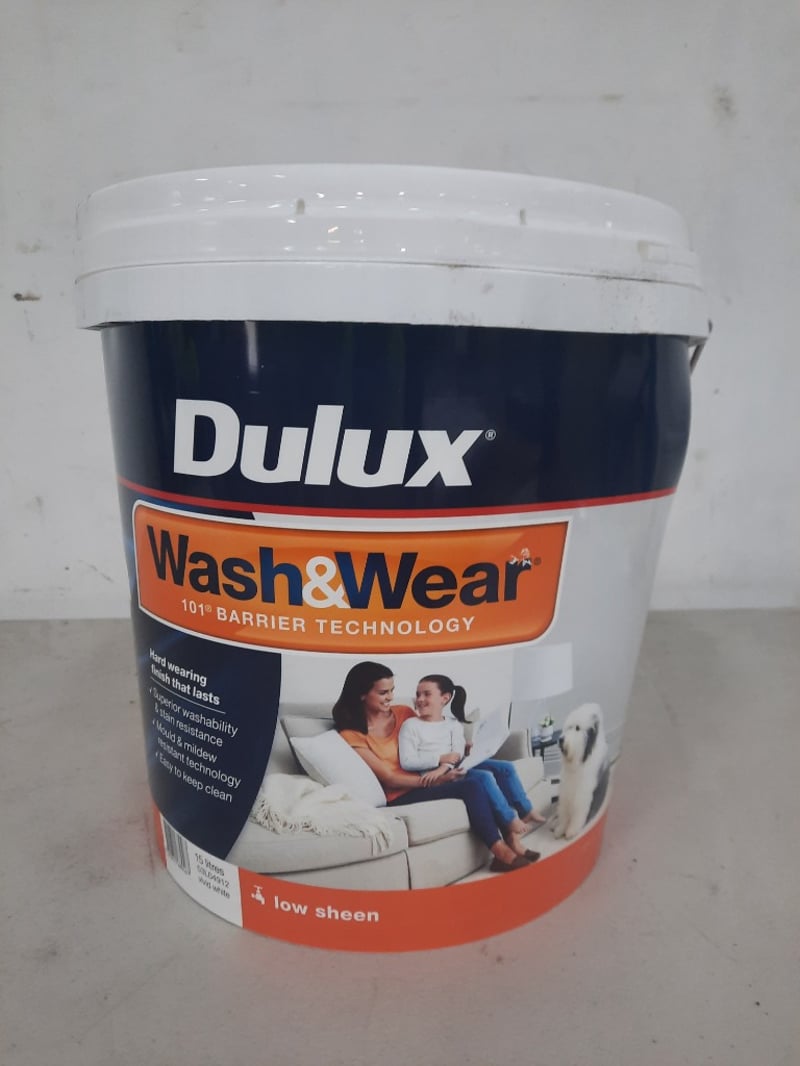 Paint, Dulux Wash and Wear, Low Sheen Vivid White 15 Litres