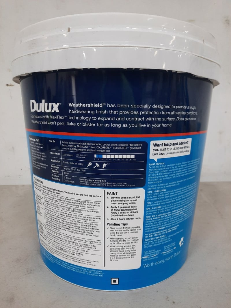 Paint, Dulux Weathershield, Low Sheen, Vivid White 15 LitresBID PER LITRE MUST TAKE 15 LITRES