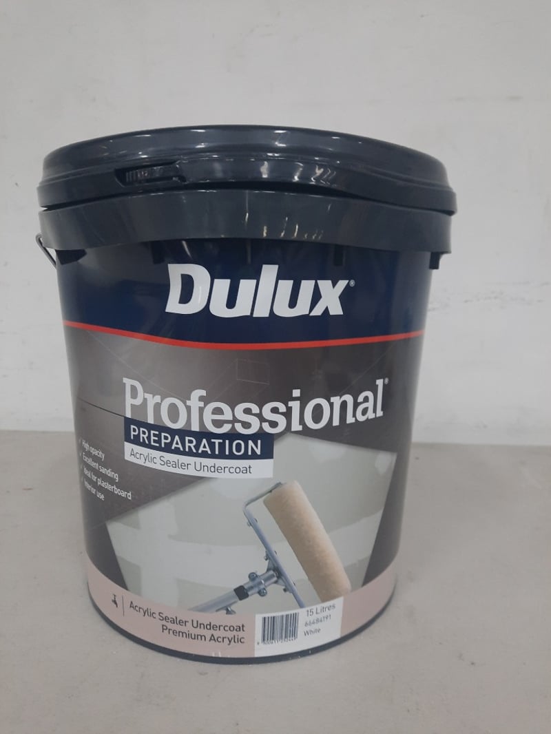 Paint, Dulux Professional, Acrylic Sealer Undercoat, White 15 LitresBID PER LITRE MUST TAKE 15 LITRES