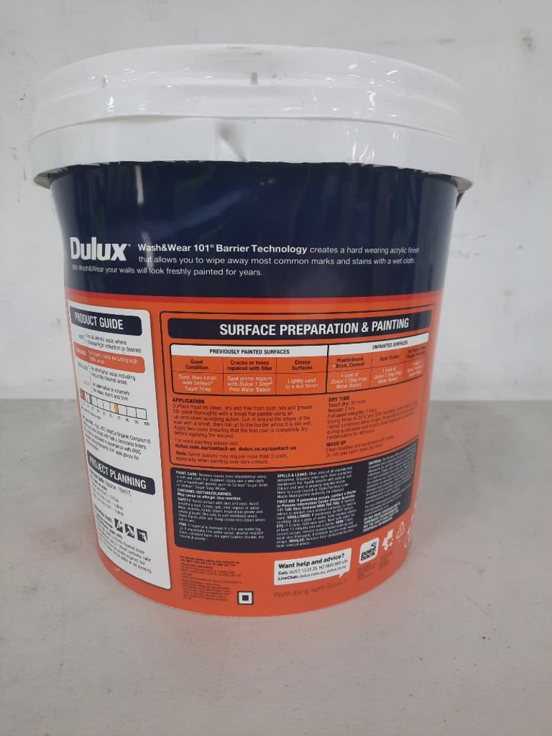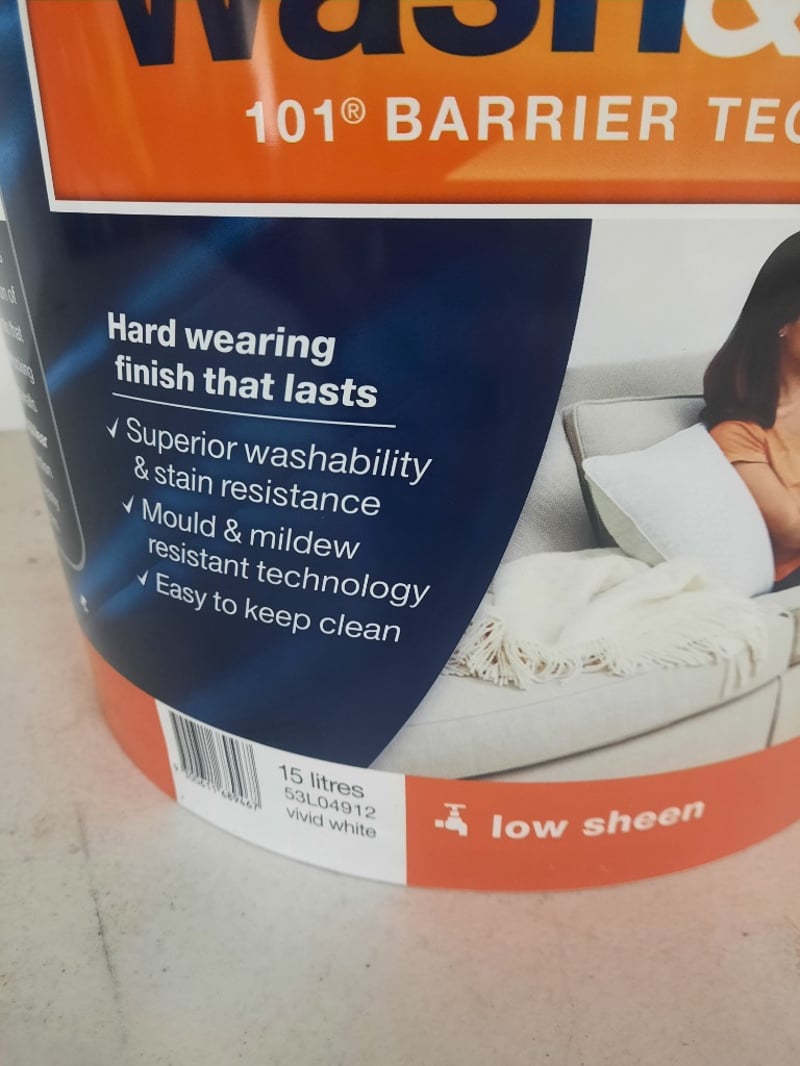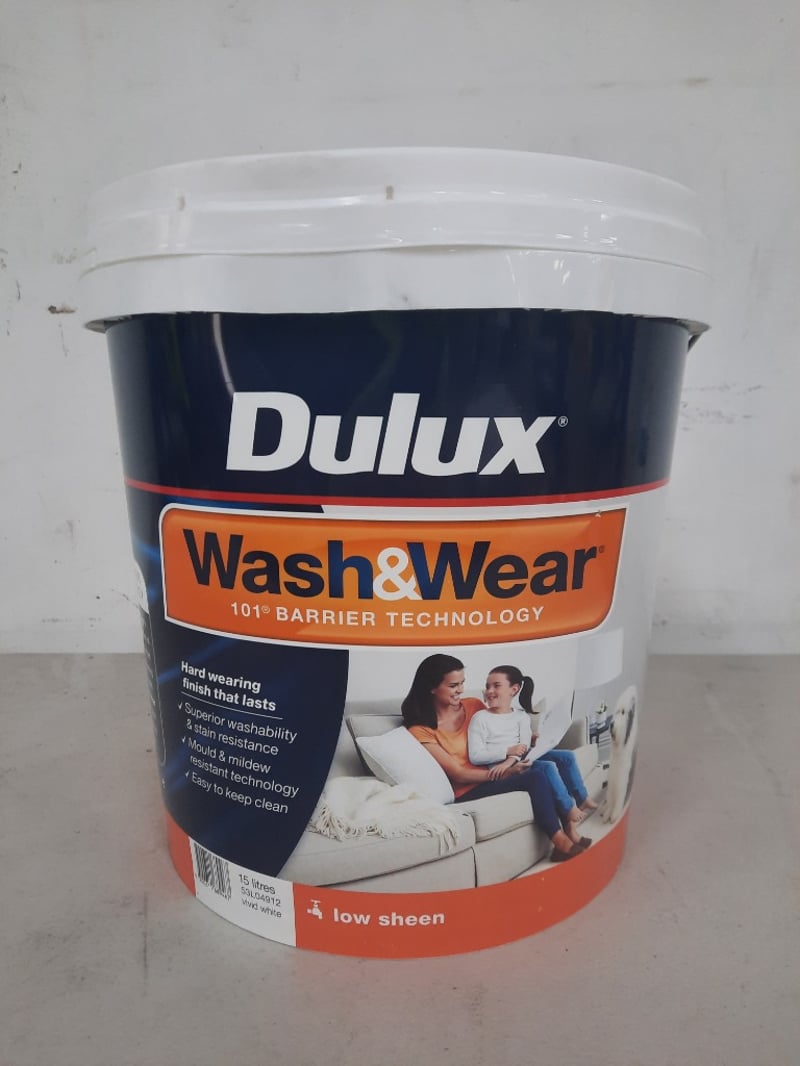 Paint, Dulux Wash and Wear, Low Sheen Vivid White 15 LitresBID PER LITRE MUST TAKE 15 LITRES