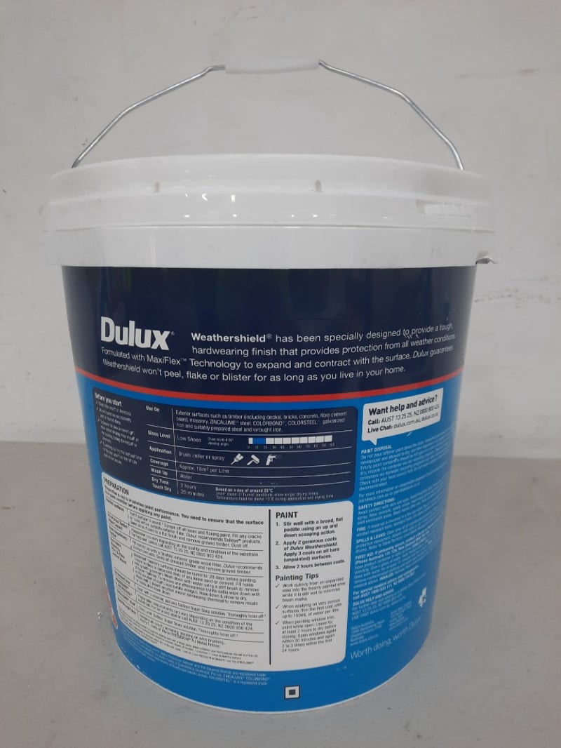 Paint, Dulux Weathershield, Low Sheen Vivid White 15 LitresBID PER LITRE MUST TAKE 15 LITRES