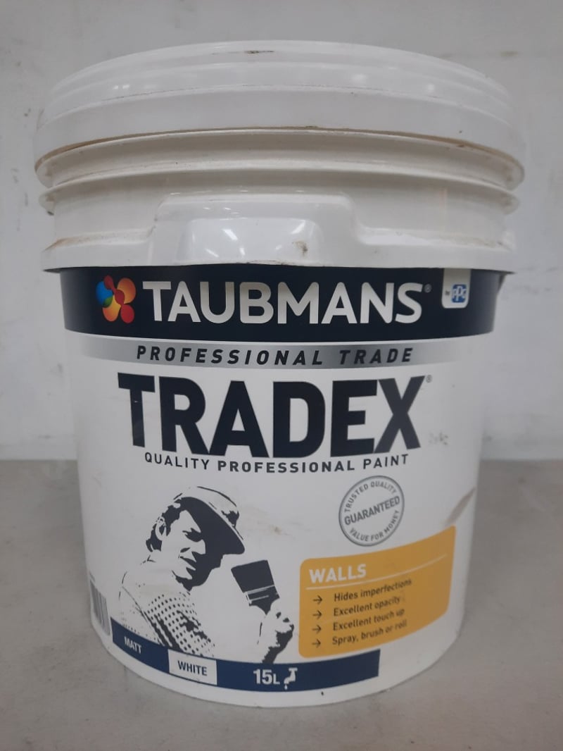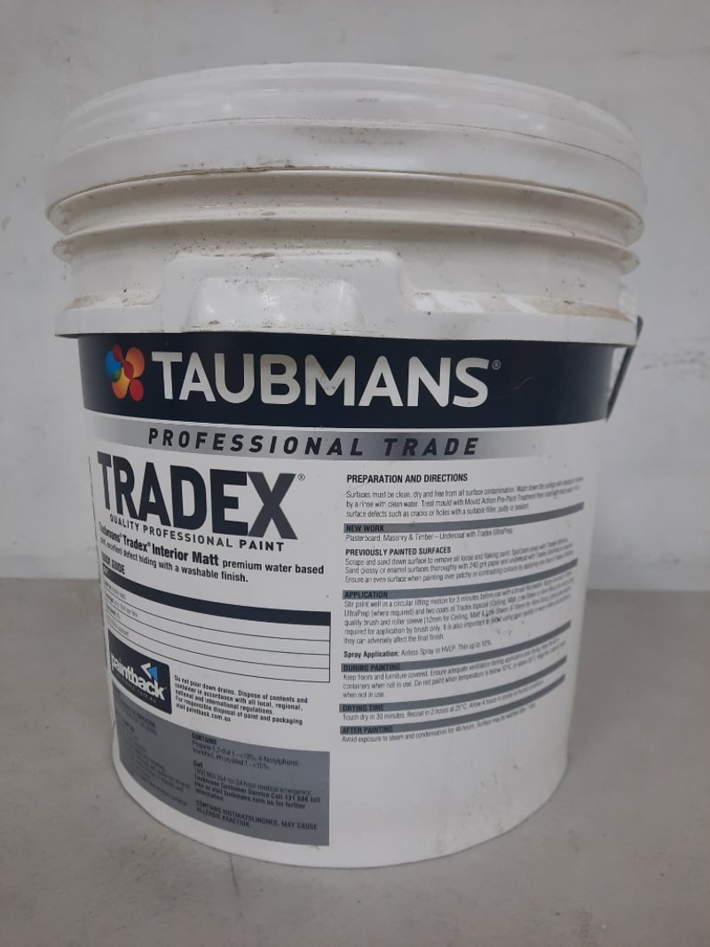 Paint, Taubmans TradeX, Walls, Matt White 15 Litres