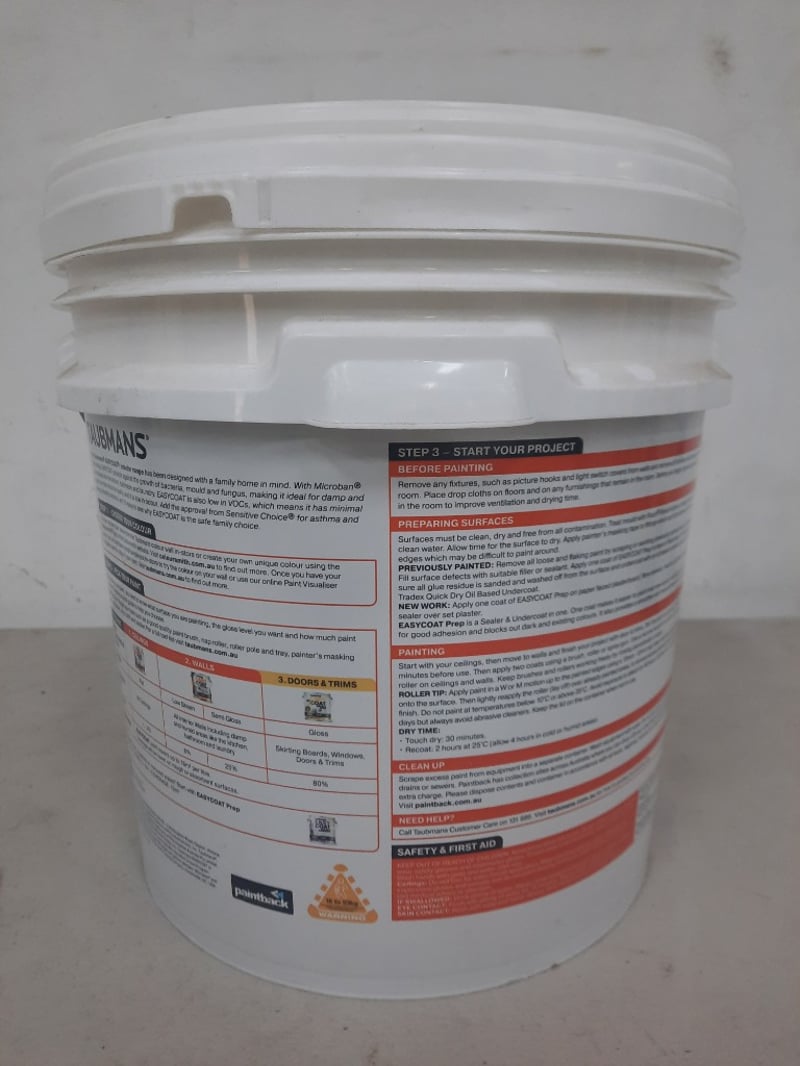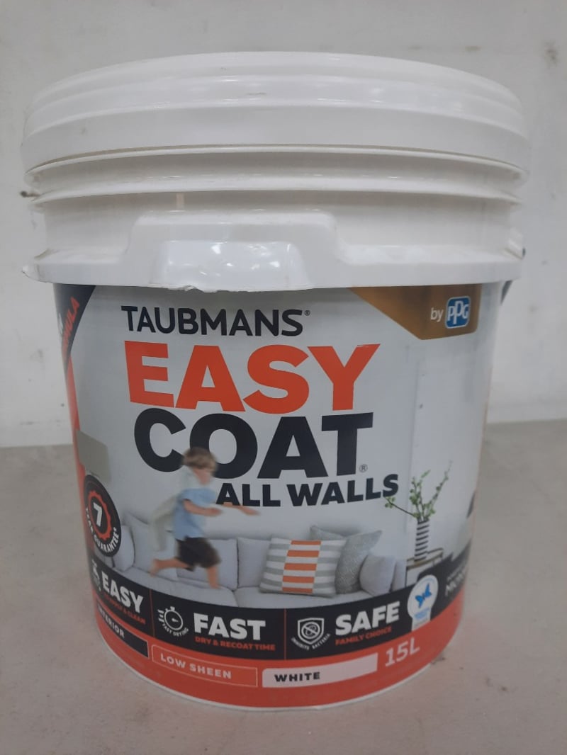 Paint, Taubmans Easy Coat, Interior, Low Sheen White 15 Litres