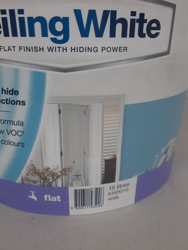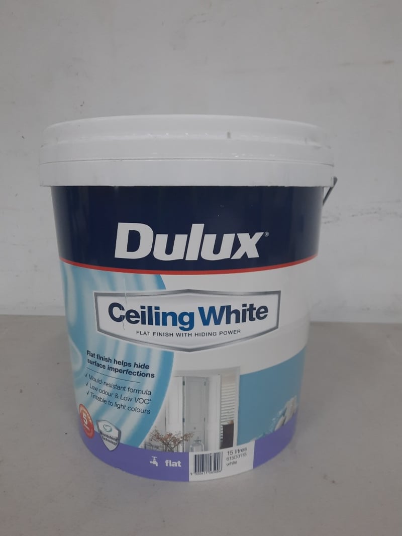 Paint, Dulux Ceiling White Flat Finish, Flat White 15 LitresBID PER LITRE MUST TAKE 15 LITRES