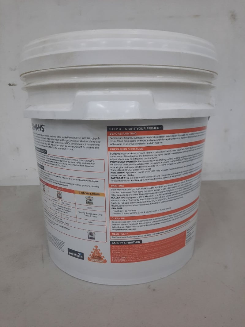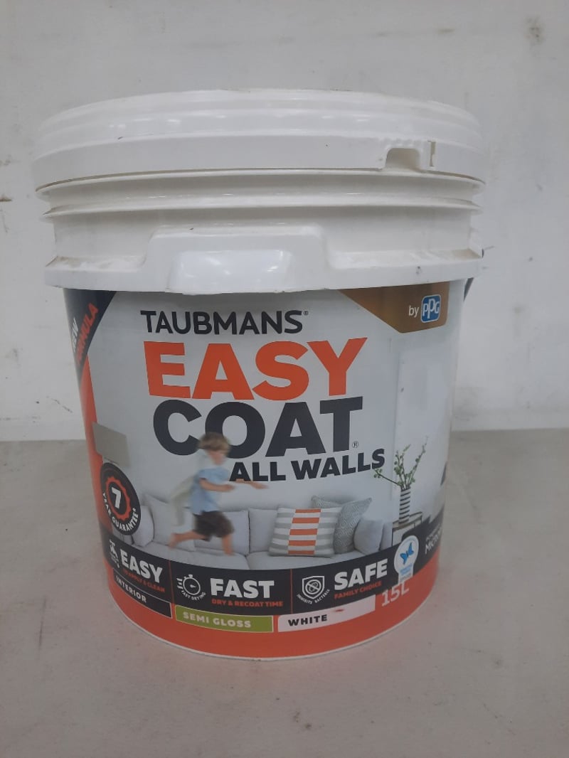 Paint, Taubmans Easy Coat Semi Gloss White 15 LitresBID PER LITRE MUST TAKE 15 LITRES
