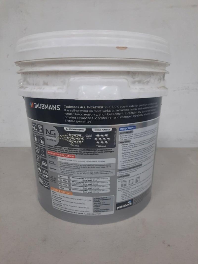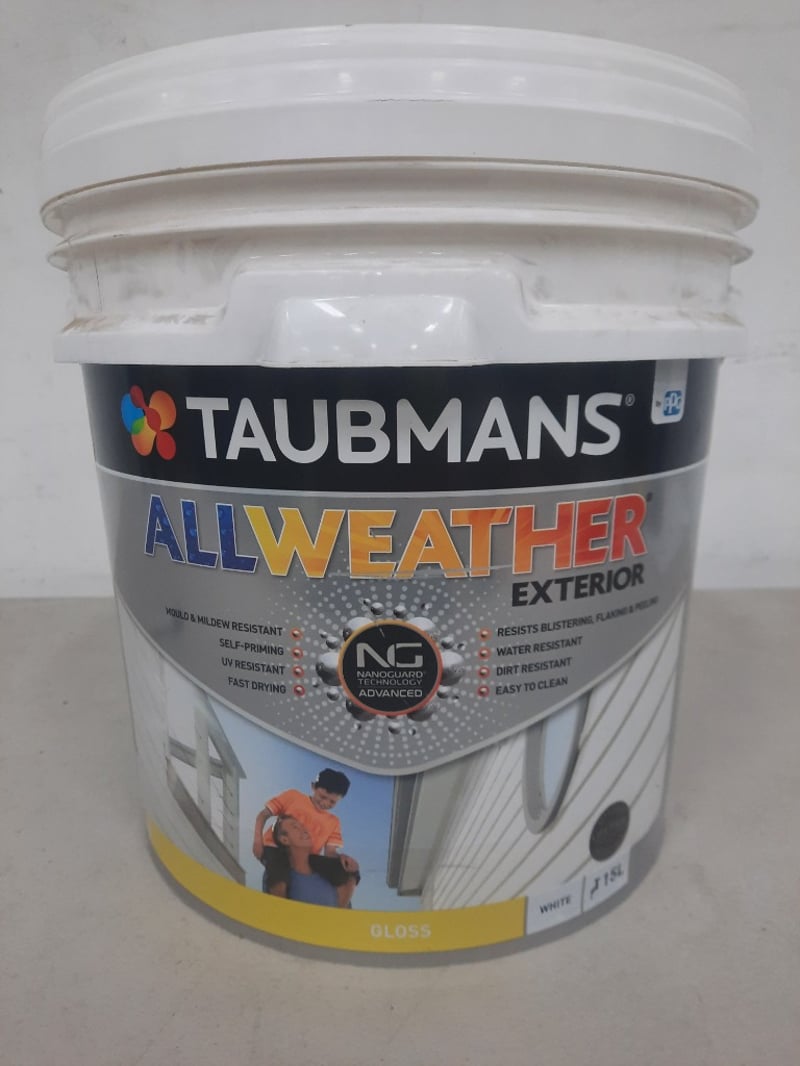 Paint, Taubmans All Weather Exterior, Gloss White 15 Litres