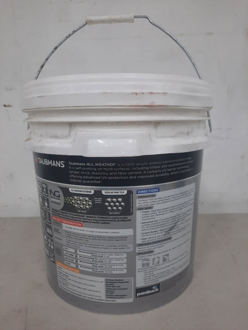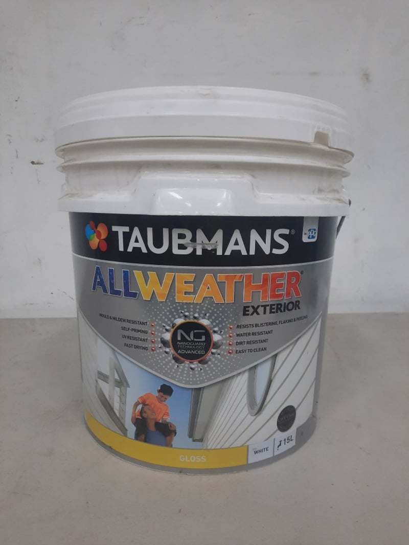 Paint, Taubmans All Weather Exterior, Gloss White 15 Litres