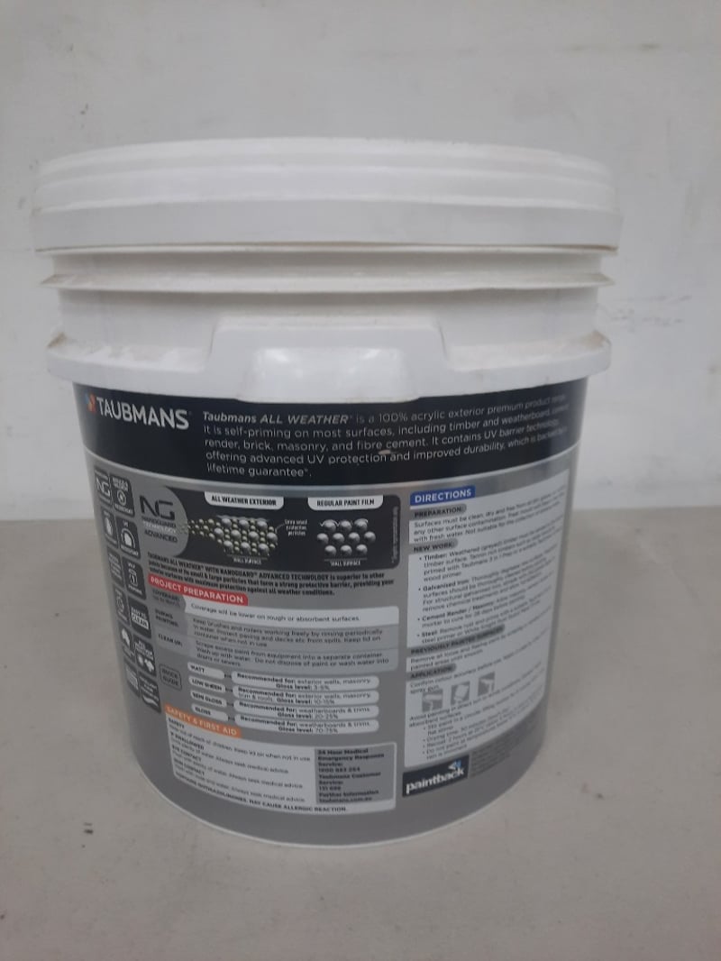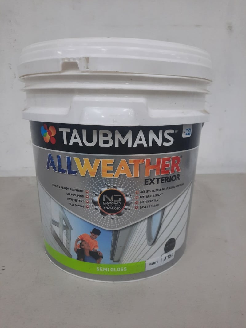 Paint, Taubmans All Weather Exterior, Semi Gloss White 15 LitresBID PER LITRE MUST TAKE 15 LITRES