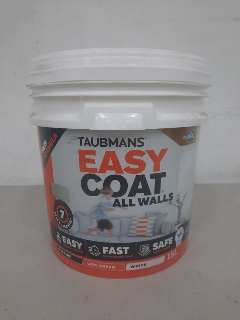 Paint, Taubmans Easy Coat, Low Sheen, White 15 Litres