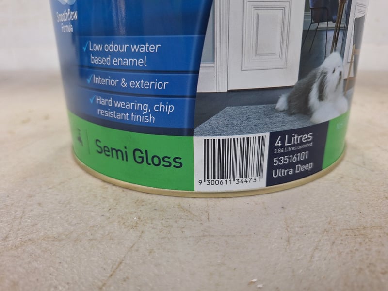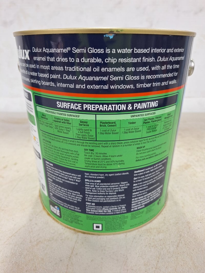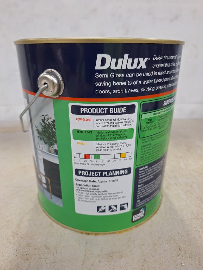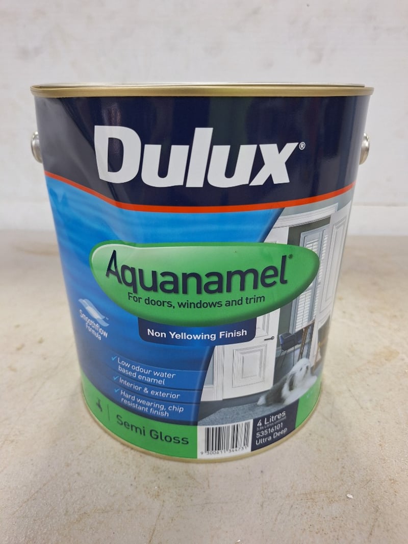 Paint, Dulux Aquanamel Non Yellowing Finish, Semi Gloss, Ultra Deep 4LBID PER LITRE, MUST TAKE 4 LITRES