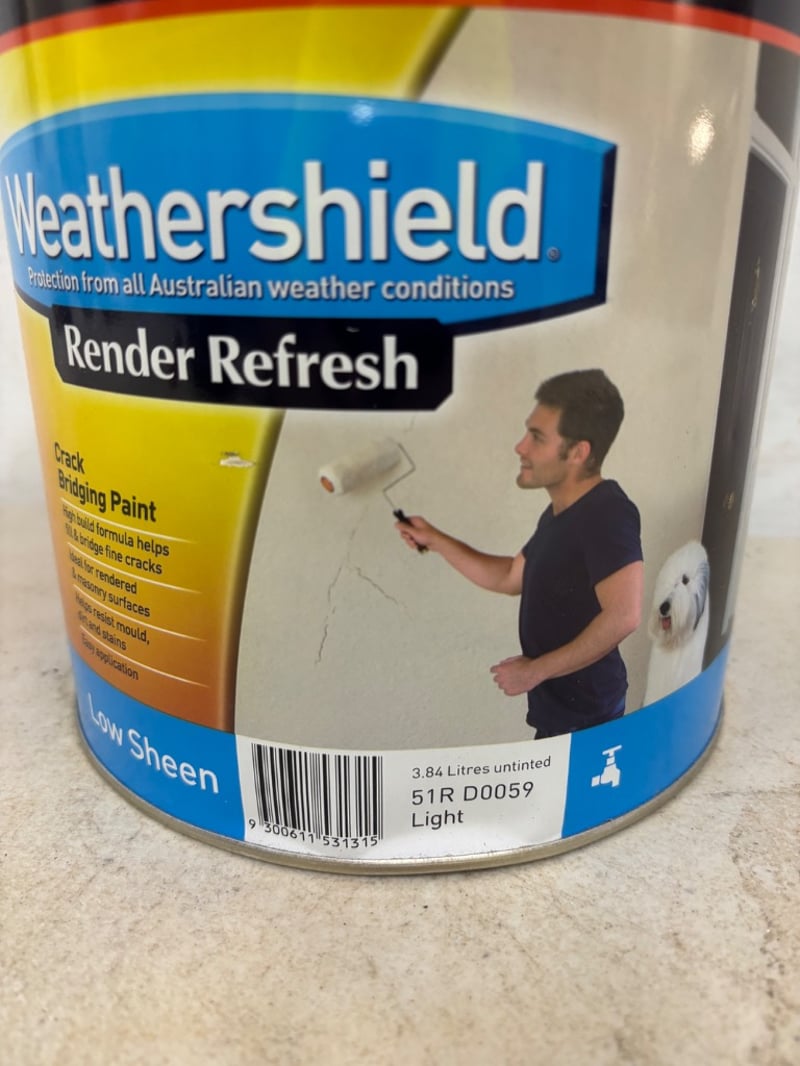 Paint, Dulux Weathershield, Render Refresh, Low Sheen, Light, Untinted 4 Litres
