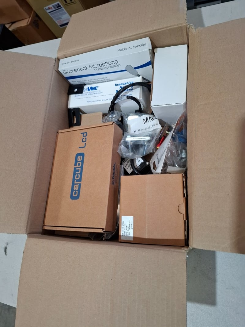 Assortment lot of Trimble transport & logistic parts include carcube LCD, 3.6 MM lent , ballbank movement detector and more