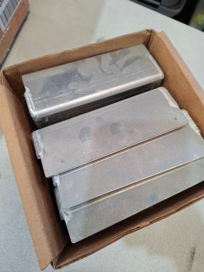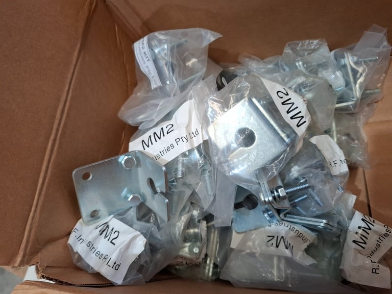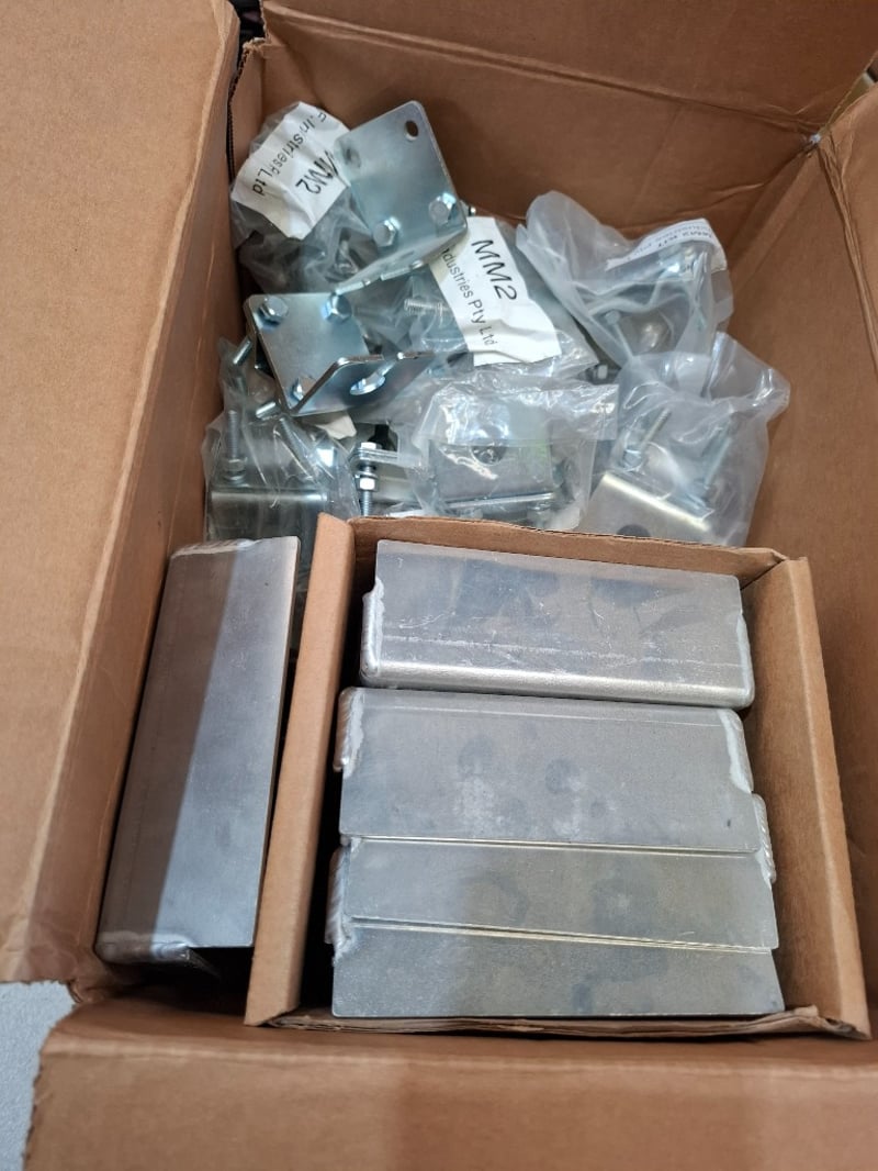 Assortment box of aluminium plates and metal brackets SOLD AS LOT