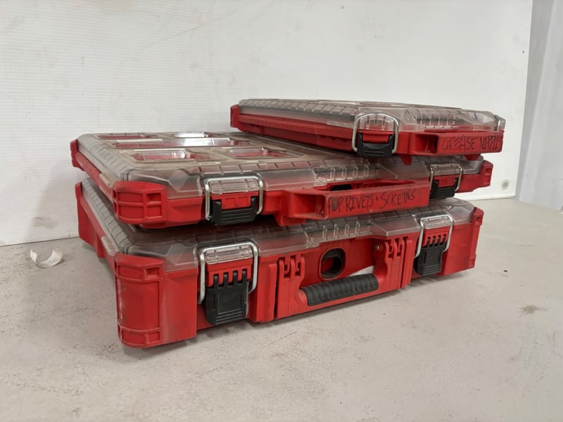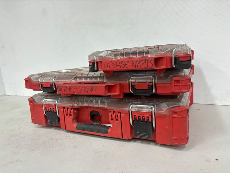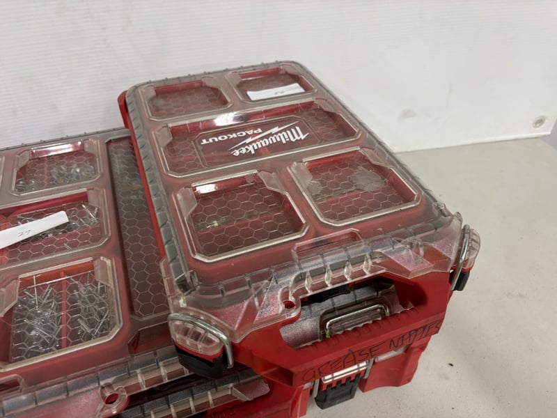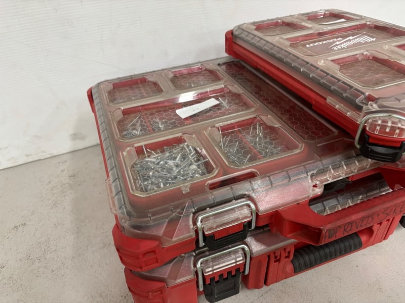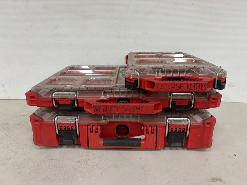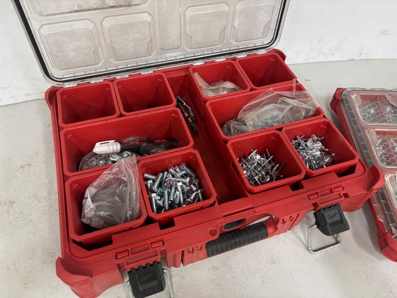 3x Milwaukee Pack Out Cases, Various Sizes, Includes Rivets, Screws, Nuts, Bolts, Washers, and More