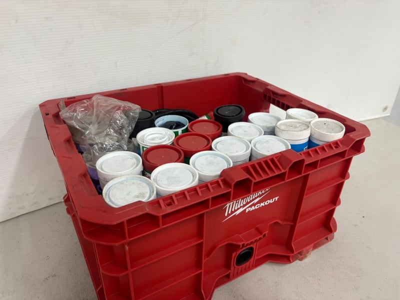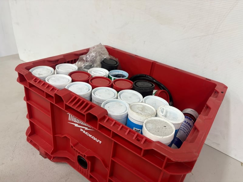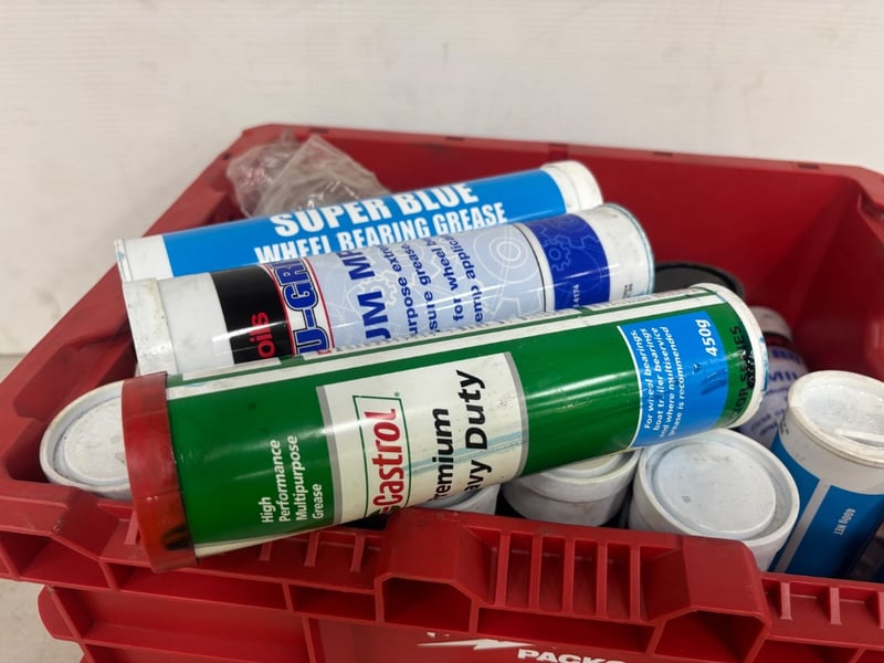 Assorted Lot of Heavy-Duty Grease Tubes, Brands: Various, Various Purposes, Included with Milwaukee Packout Crate
