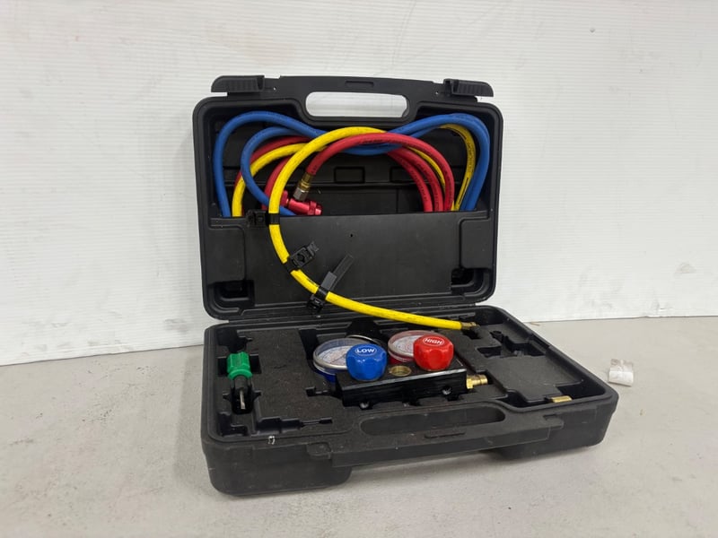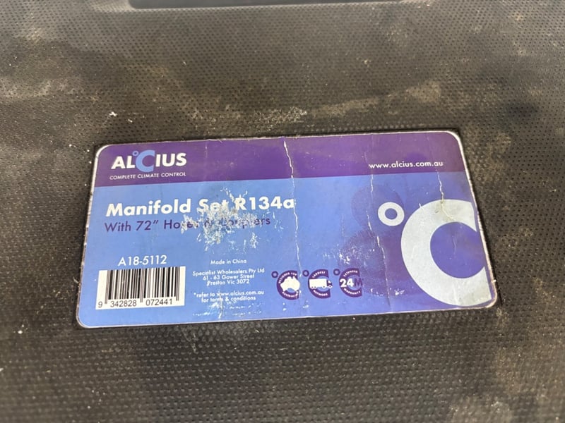 Manifold Gauge Set - With hoses and couplers, Model: A18-5112, Brand: Mastercool Alcius, Condition: Untested