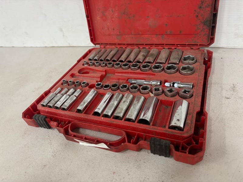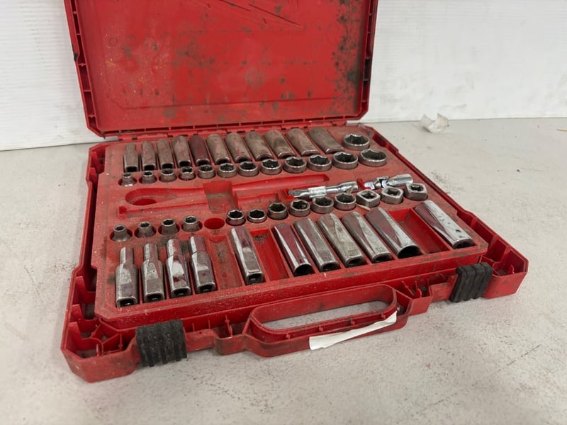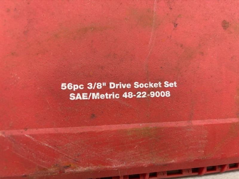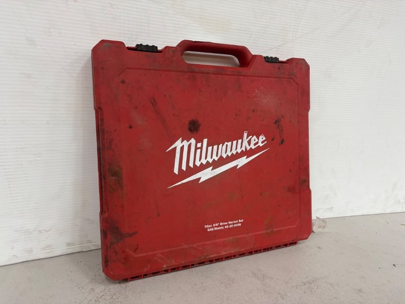 56pc 3/8” Drive Socket Set, Brands: Milwaukee, Model: 48-22-9008Note: Missing Socket Wrench, Extension, and a few sockets.
