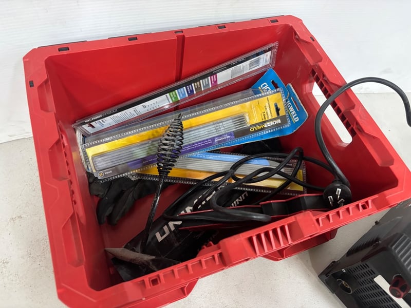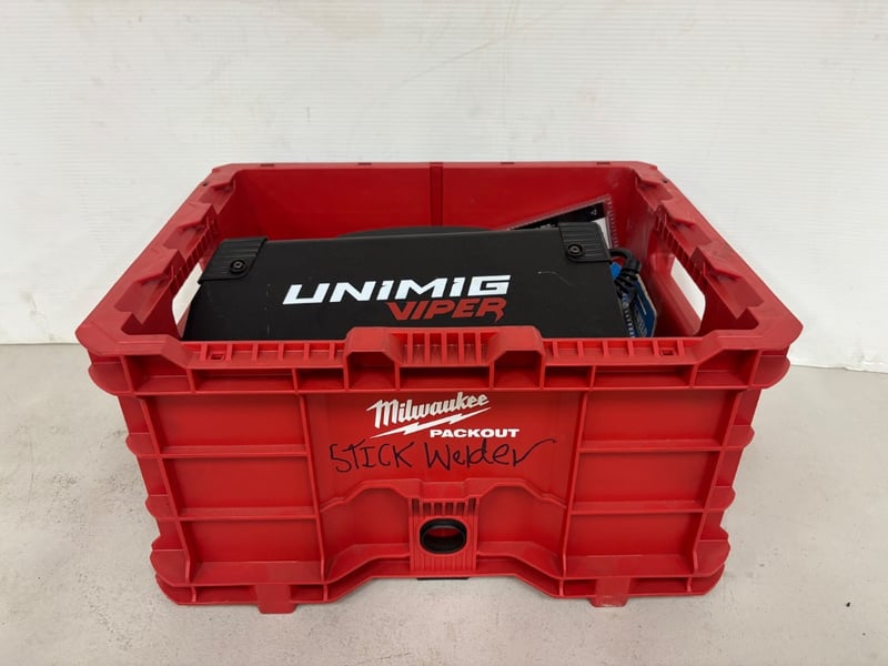 Assorted Lot of Welder Sticks and Unimog Viper ARC140, and More, With Milwaukee Packout Crate Condition: Untested