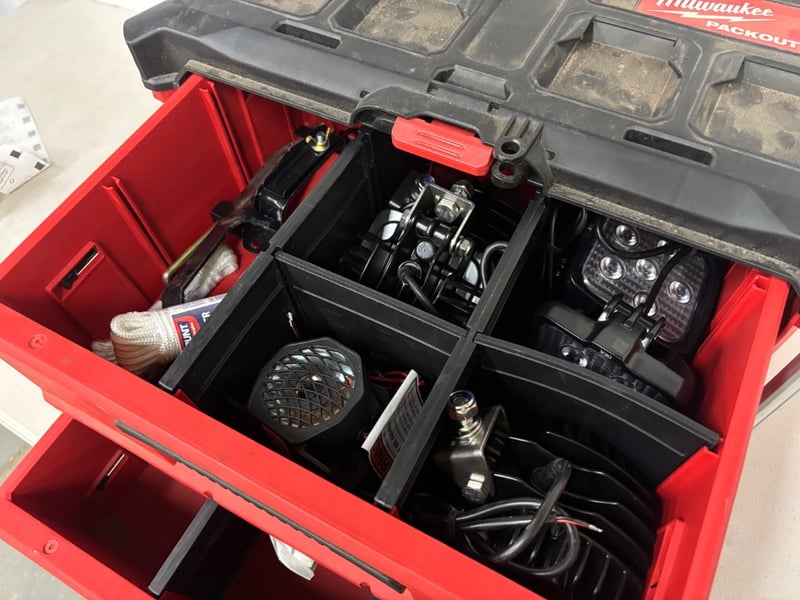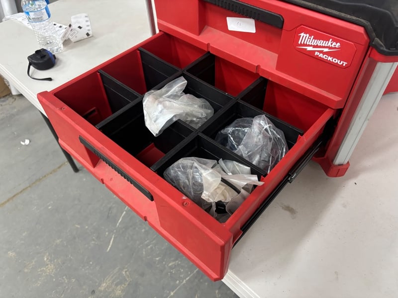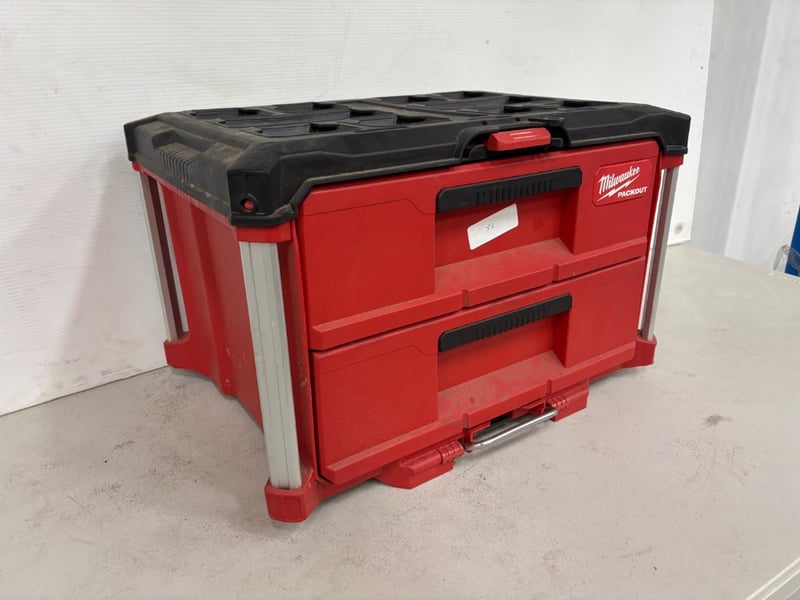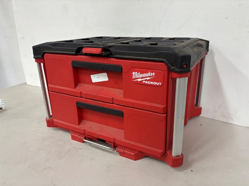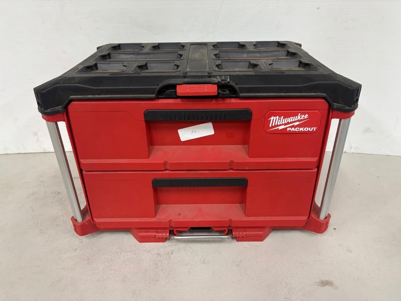 Two Draw Toolbox, Brand: Milwaukee, Packout, Model: 48228442, Includes: LED Lamps with mounts and hardwareSold as lot.