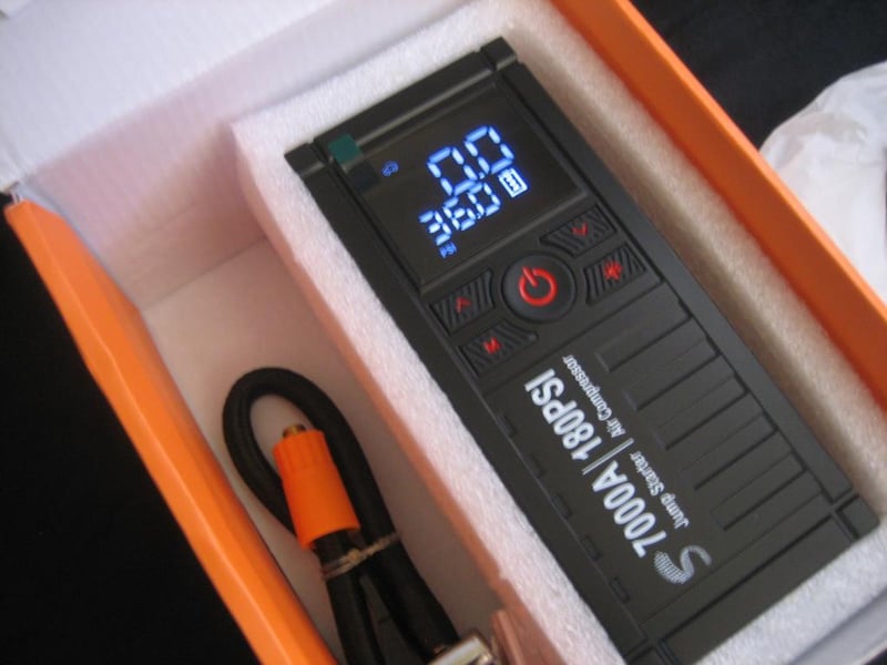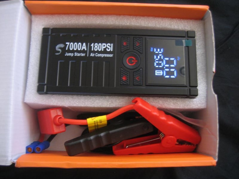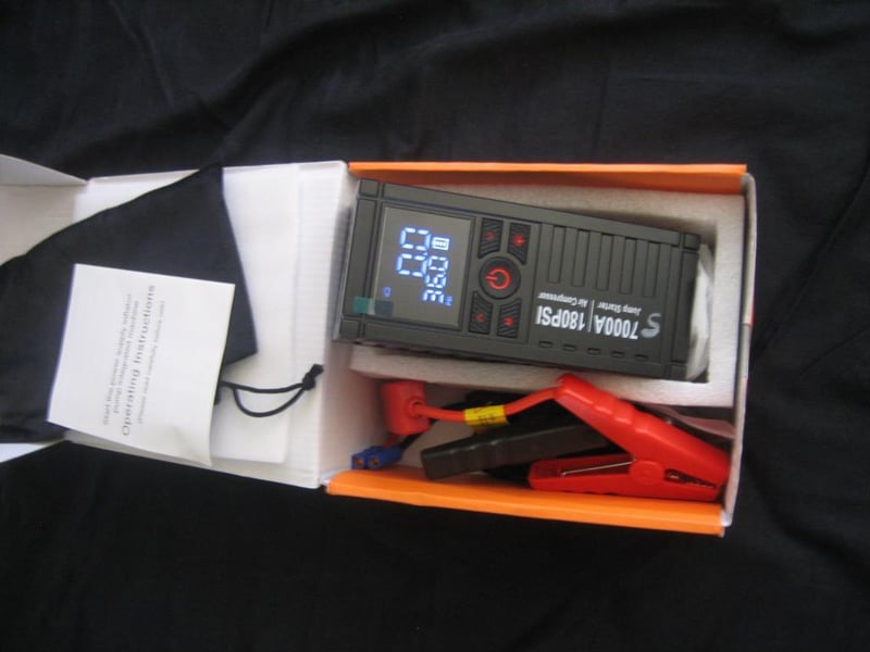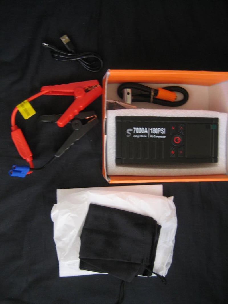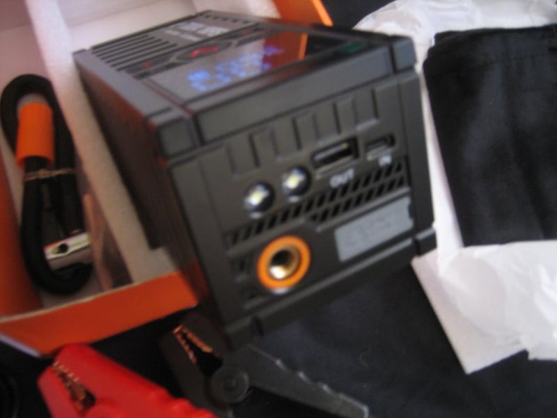 NEW Emergency Car Jump Starter Pack with built in inflator pump for vehicles,bikes etc. With accessories, in Box.