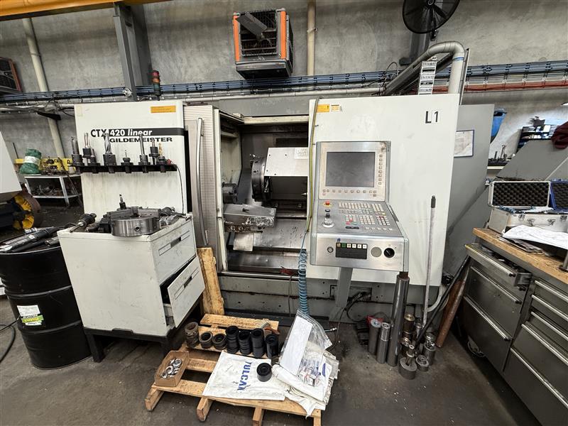 2004 CTX 420 LINEAR GILDEMEISTER CNC LATHE Make: DMG Gildemeister Drehmaschinen GmbH (Made in Germany) Model: CTX 420 Linear Year: 2007 Serial Number: 07280090791 Control System: Siemens Sinumerik CNC Controller Comments / Condition : Vendor Advises of the Following : The live tooling on the turret is currently non-functional. Suspected an electrical issue may be preventing the lathe from powering on. Machine is intact. Servo drivers and operating screen have not been removed. Does not come with any tooling. Note : This Asset is OFFSITE. Vendor Advises that This Asset is Not Running. Buyer to Organise Safe Removal of Asset. Machine Only, No Accessories like Drill Bits ect, are provided with this Lot.
