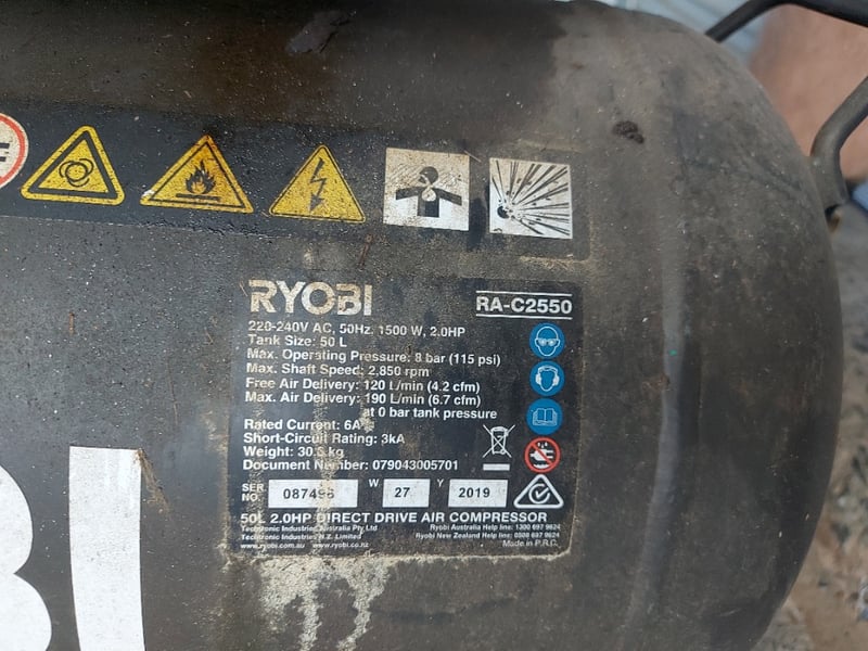 Air Compressor, Air Wave, Ryobi, 50L, 2.0HP, Model, RA-C2550, Sold Untested