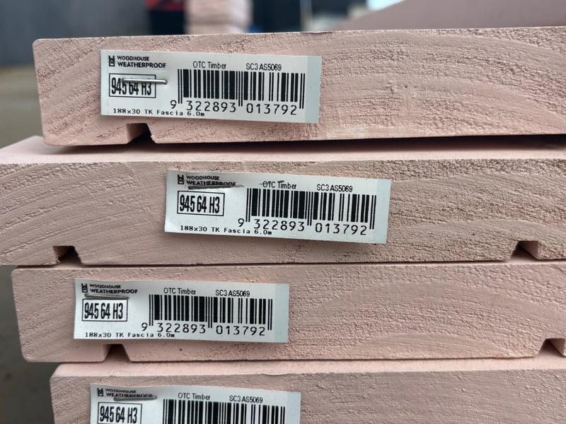 WoodHouse Weatherproof OTC Timber SC3 AS5069. Per Length Approx CM. L/600 W/3 H/18.5 14 Lengths Bid Per Length, must take 14