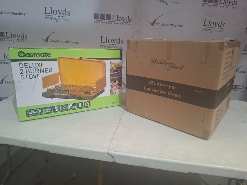 1x Healthy Choice 23L Air Fryer Convection Oven, RRP $ 1491x Gasmate Delux 2 burners stove , RRP $ 149Sold as lot