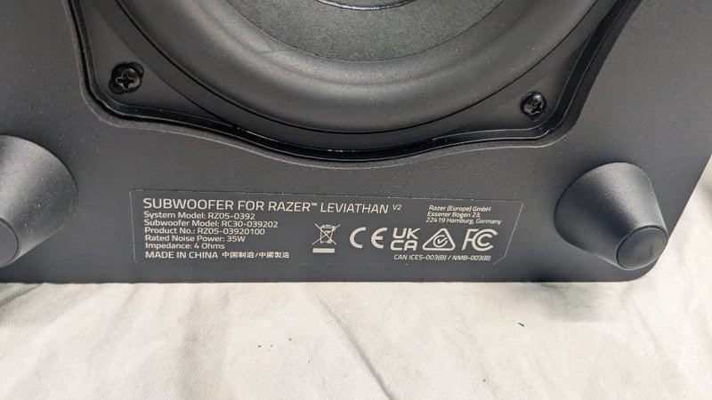 Razer Leviathan V2 subwooferBrand: RazerModel: RZ05- 0392Description/Extras: soundbar can be powered by a single USB Type C cableNOTE: INSPECTIONS HIGHLY RECOMMENDED