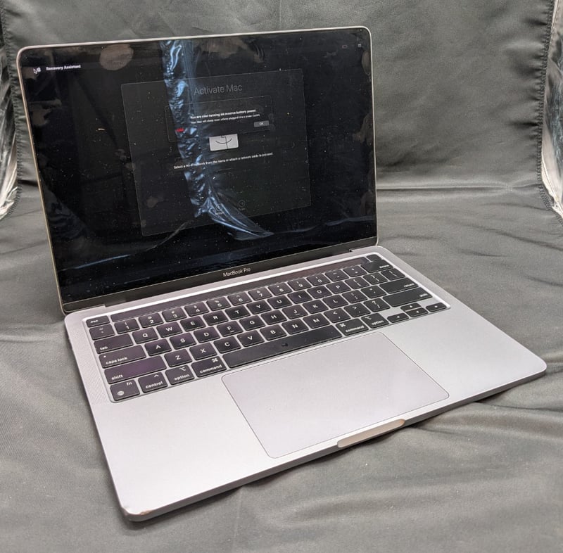 MacBook Pro (13-inch, M1, 2020) - Serial number: C02F55LKQ05DLAPTOP IS LOCKEDNOTE : SCUFFS, MARKS, DENTS VISIBLE, CHARGER NOT INCLUDED