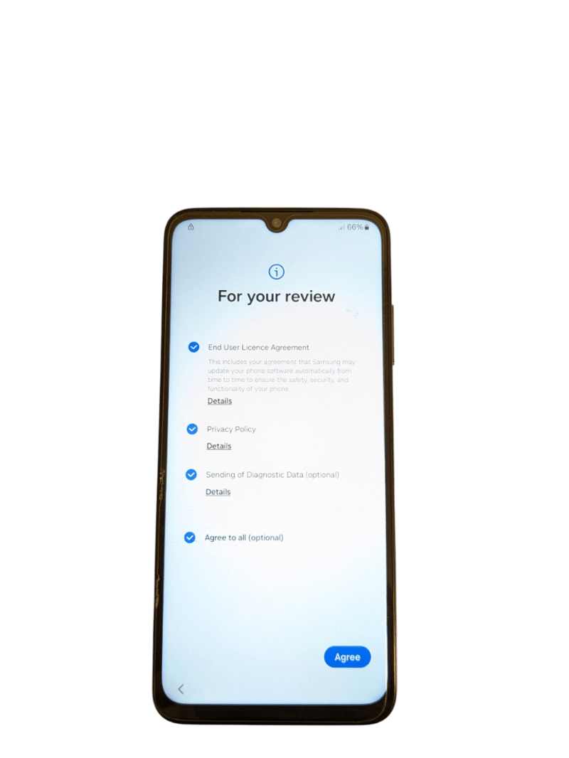 Samsung phone, unknown model, unknown storage size