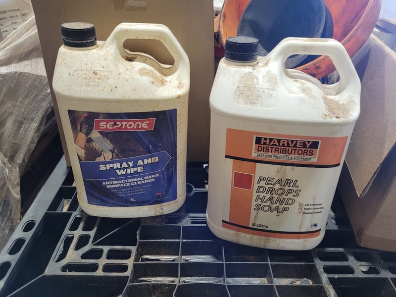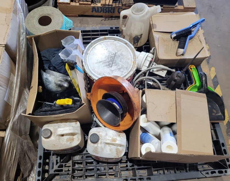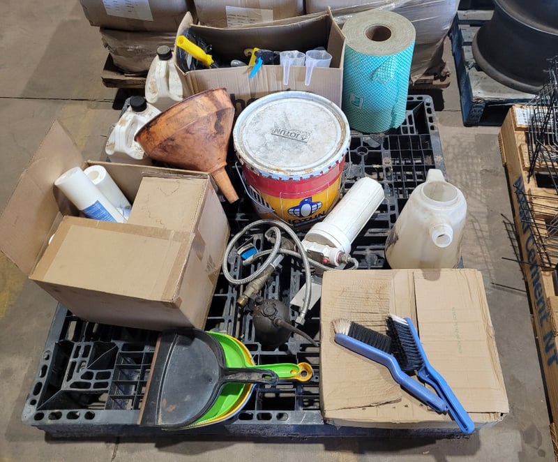 One Pallet with Assorted Goods. Hand Soaps, Sediment Filter Cartridges and More. Inspection Advised. SOLD as LOT.