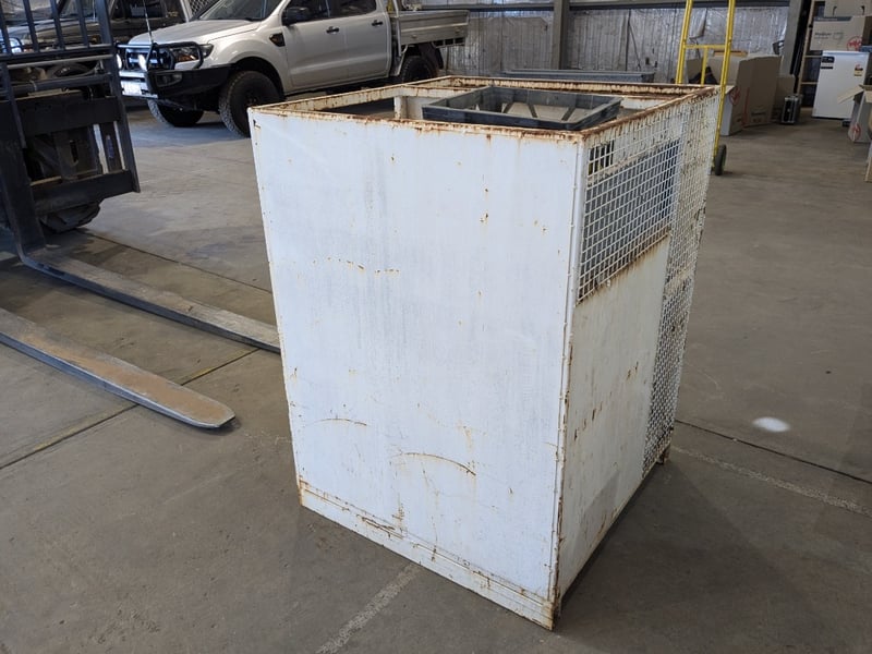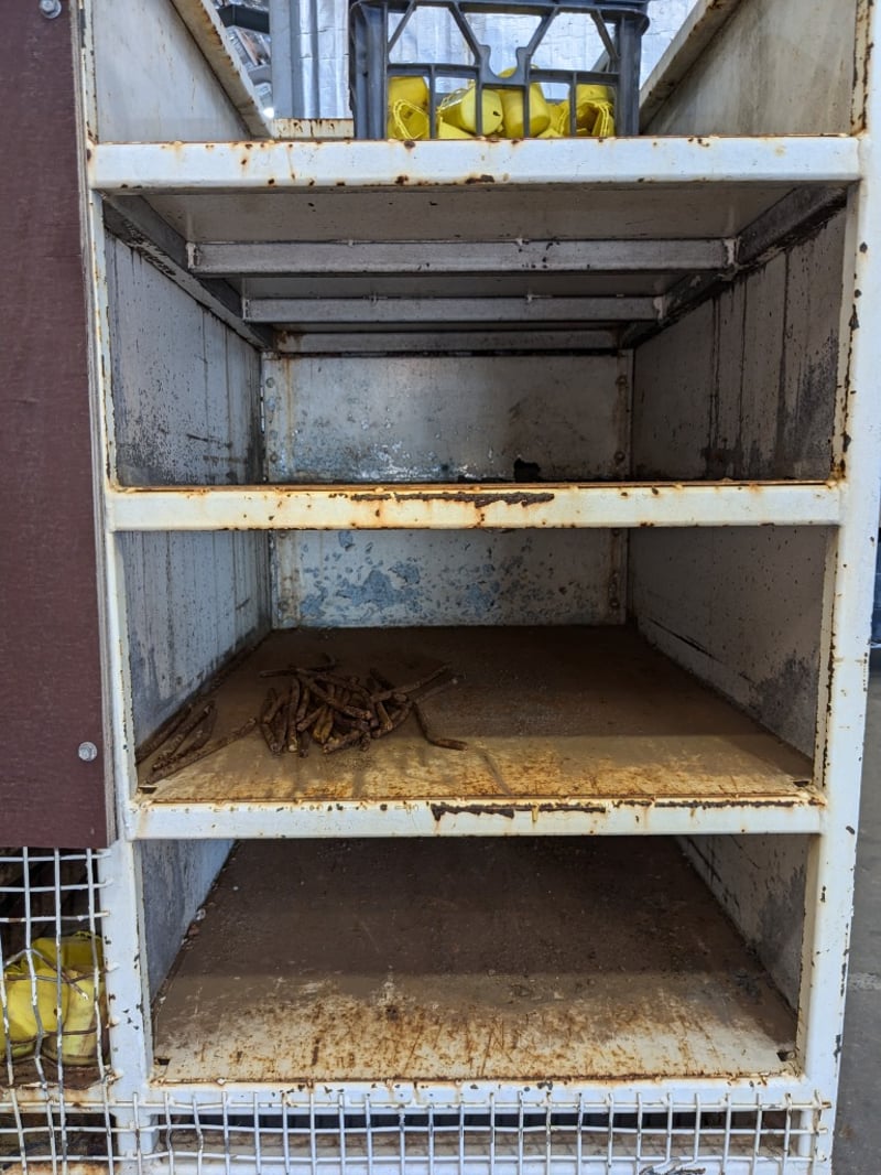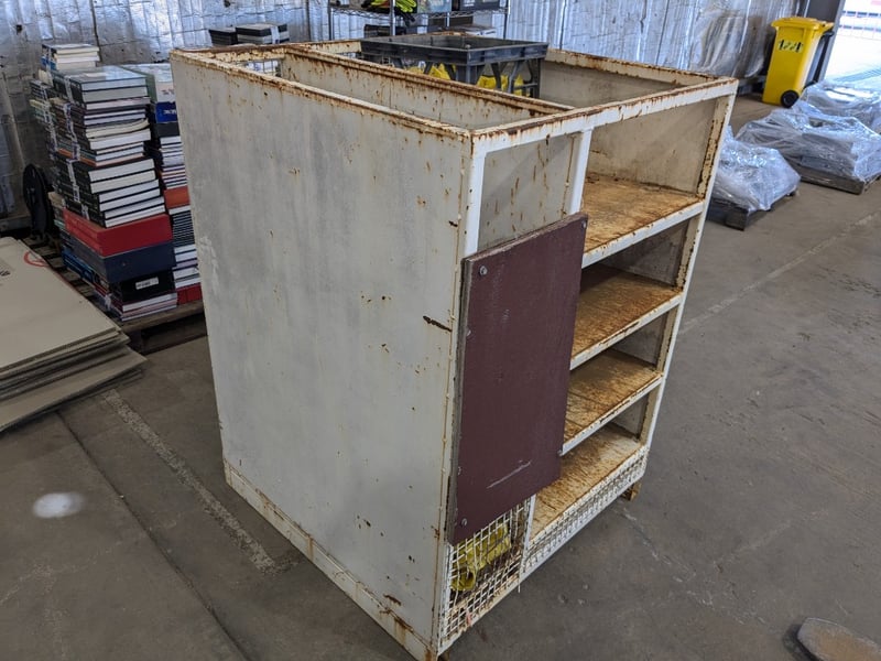 Upright heavy duty steel cabinet.