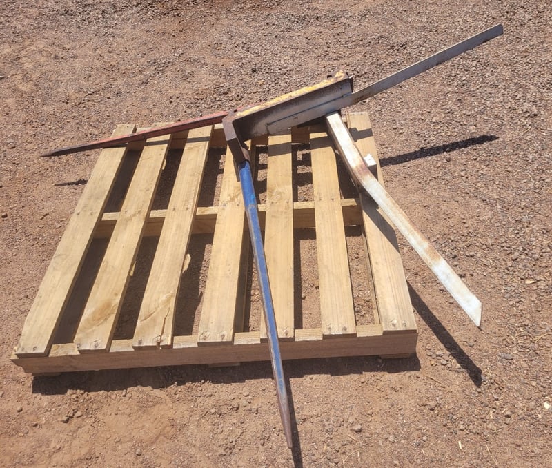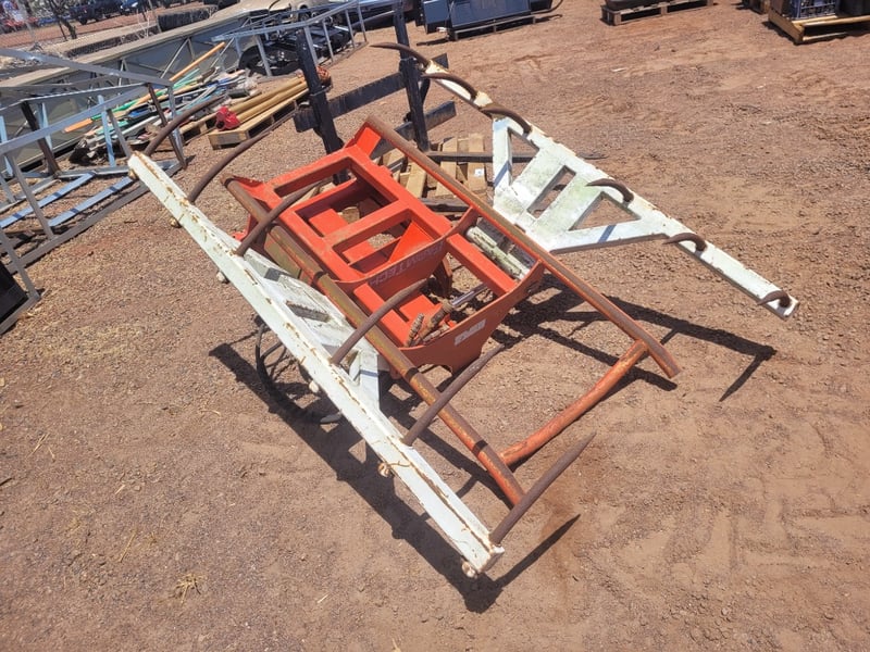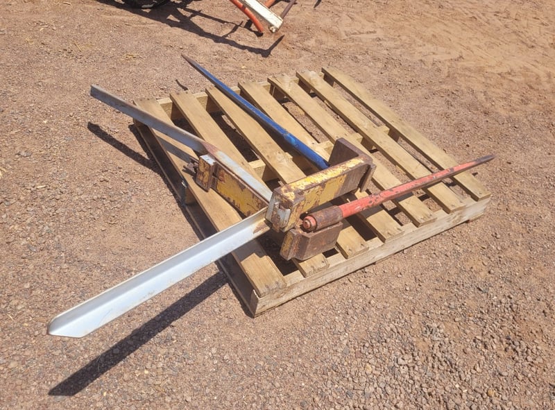 Farmtech Hay Baler Serial NO. 329292 and 2 Fork Attachments. SOLD as LOT.