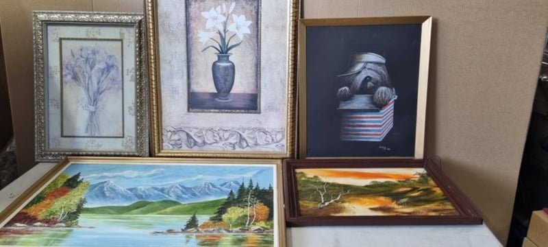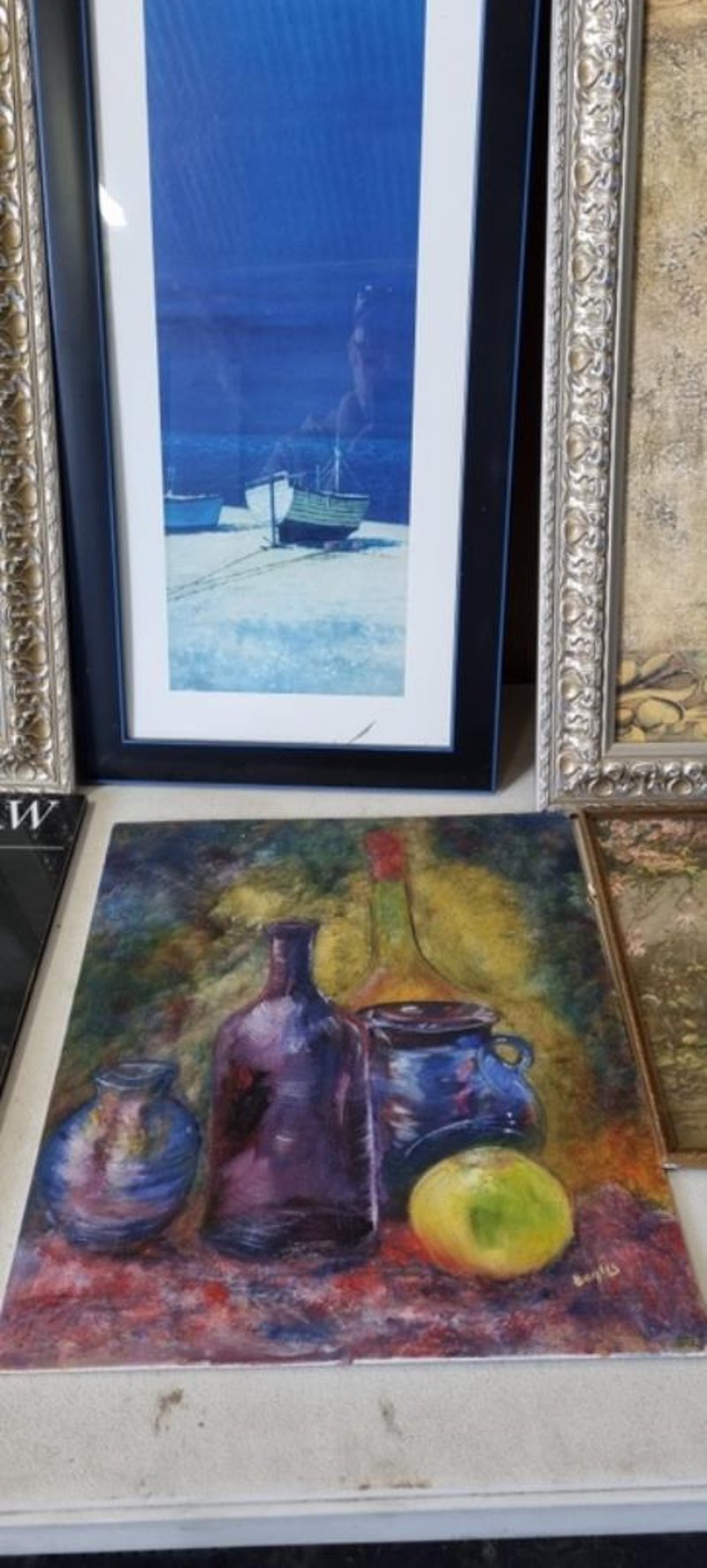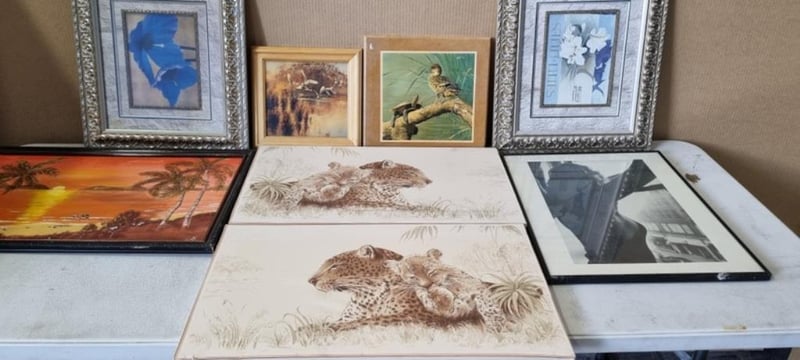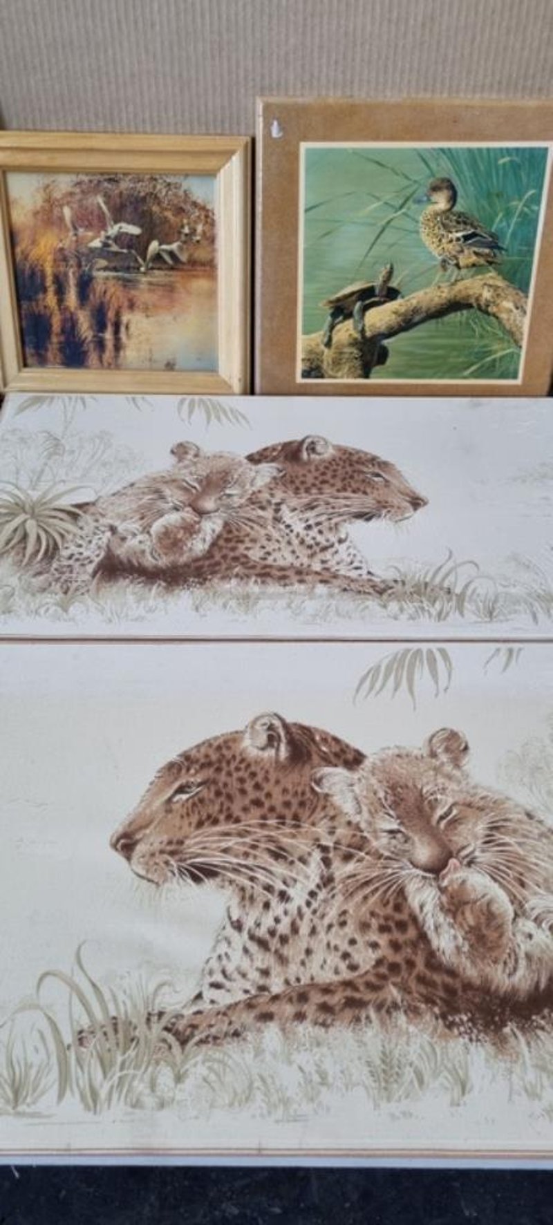 Artwork, 20 plus pieces including framed painting and prints depicting flowers, leopards, birds and more Refer to all images Sold as lot