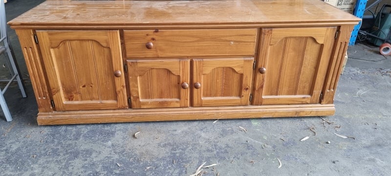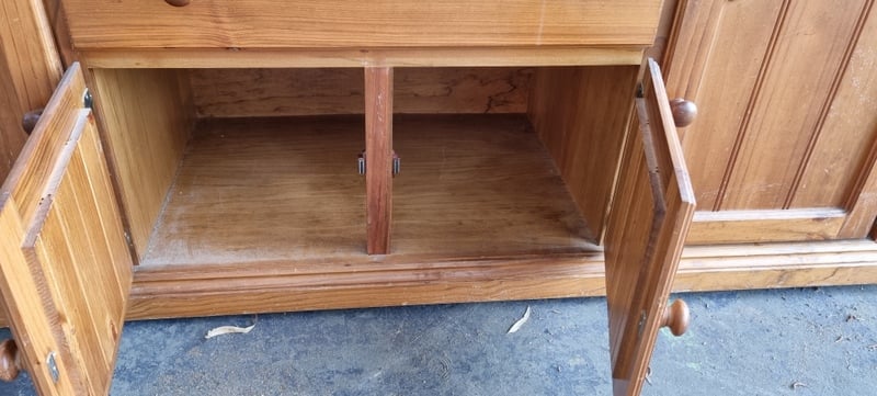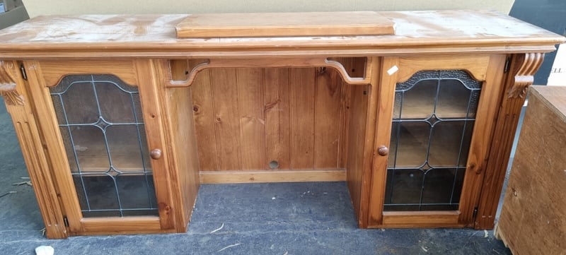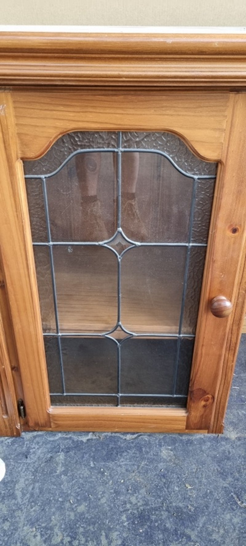 Display cabinet, 2 piece timber display cabinet Dimensions 180cm H x 210cm W x 57cm D
