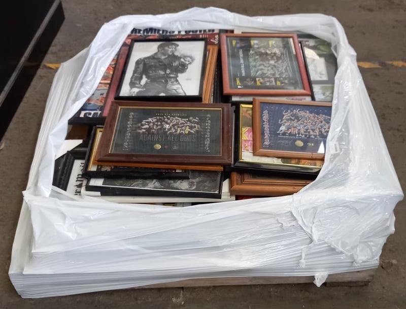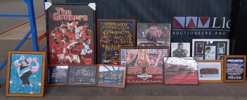 Assorted framed prints Inclduing, AFL, movie music prints More framed prints included, that are not in image. Sold as lot