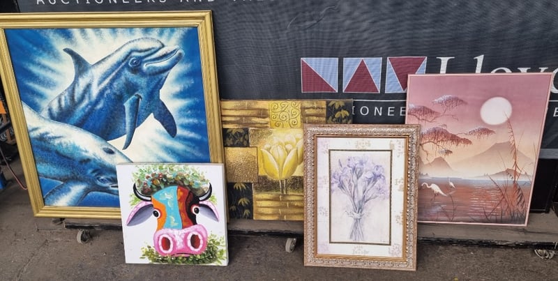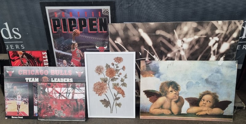 Artwork. Assorted prints and paintings. Including Michael Jordan, framed print depicting dolphins and more.