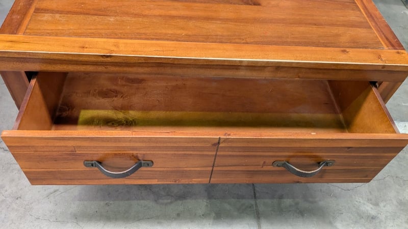 Medium Stained Timber Coffee Table, 1x Pullout Drawer