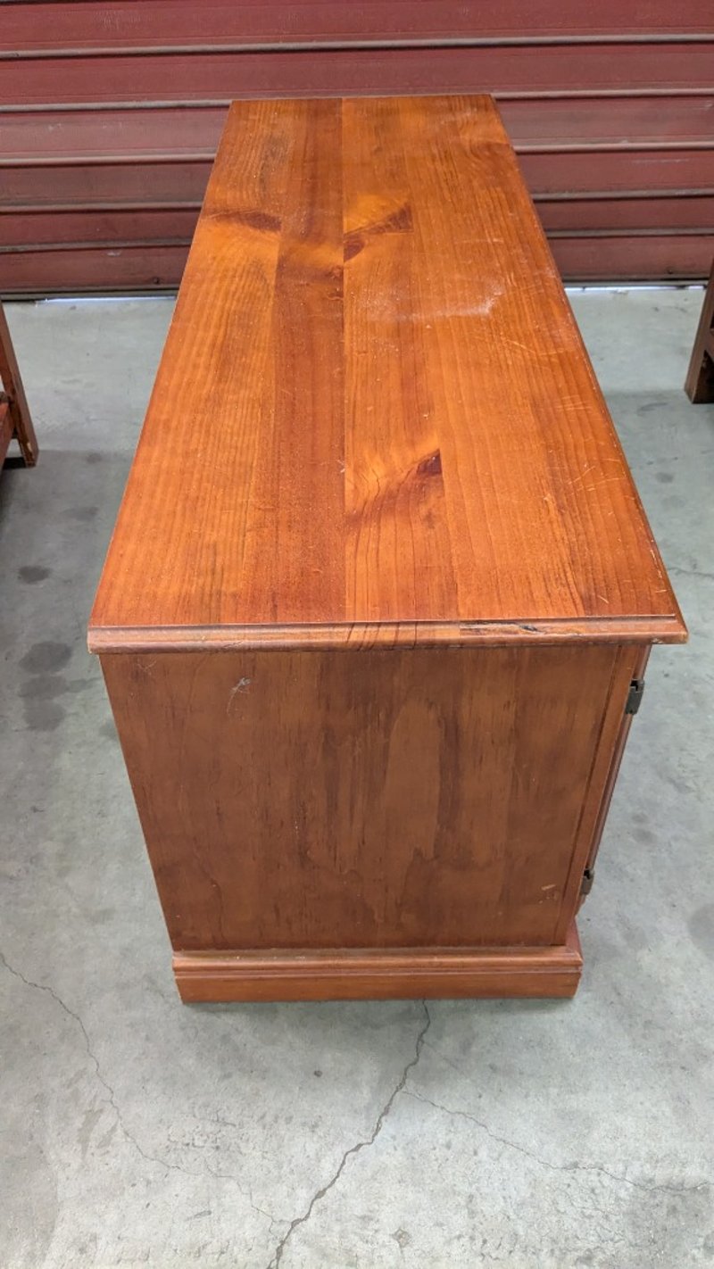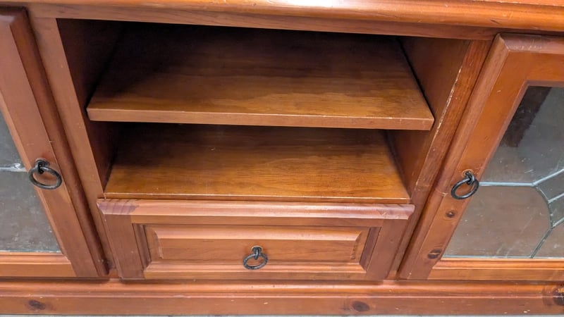 Medium Stained Tv Entertainment Unit, 2 x Glass Swing Doors