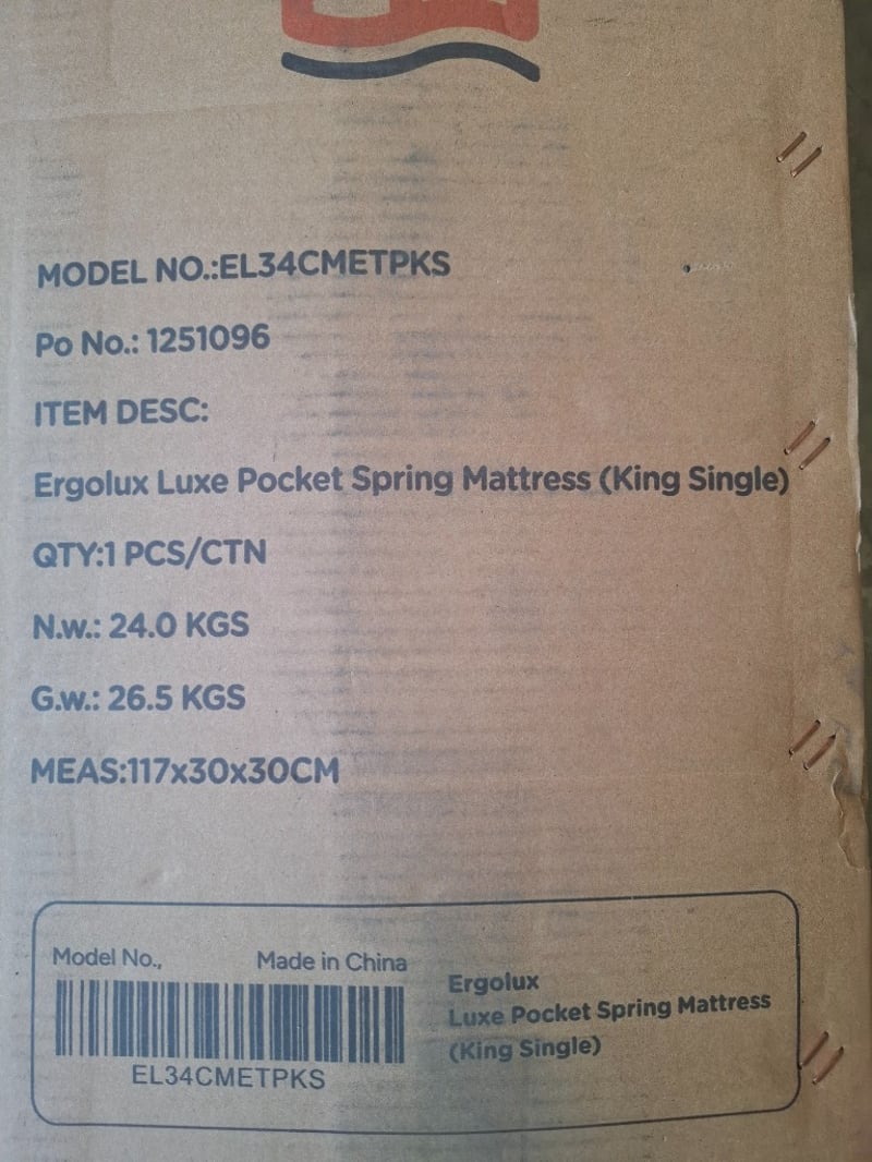 Ergolux Luxe Pocket Spring Mattress (King Single).