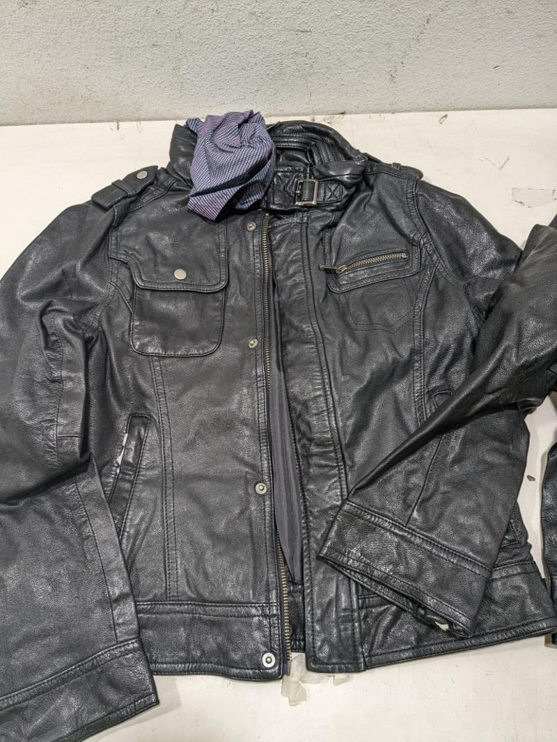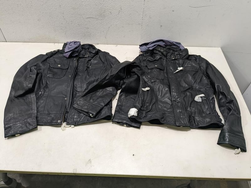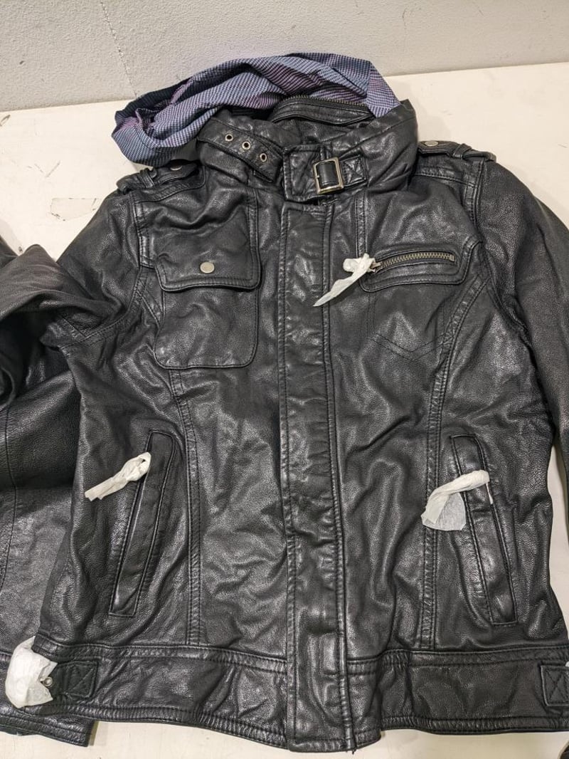 Assorted leather-like jackets different sizes and types.Sold as a lot.