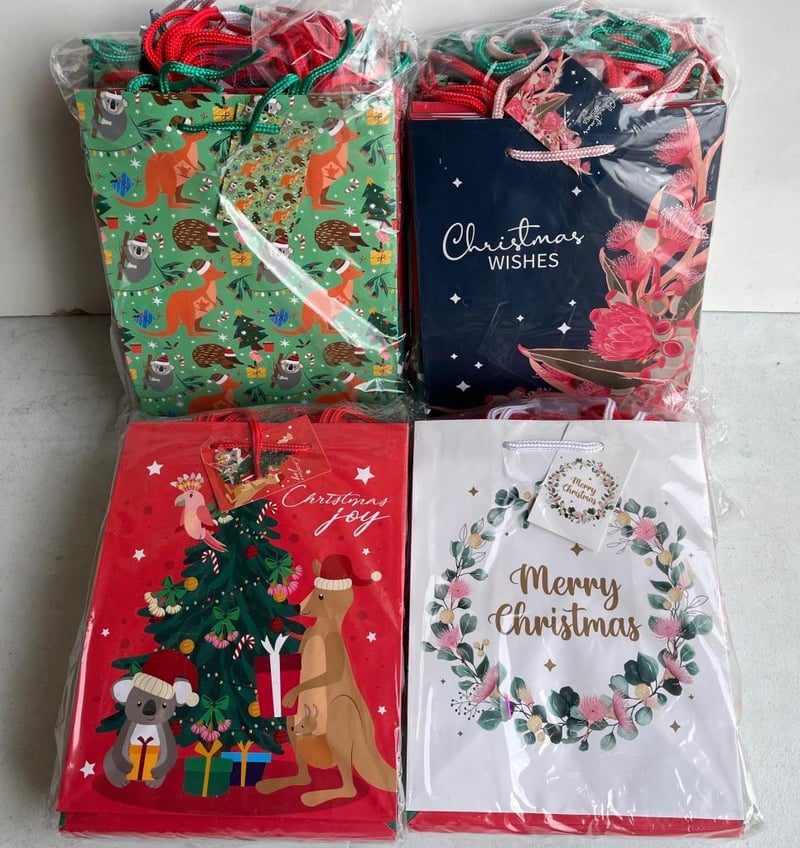 Bulk of 96 Xmas Gift Bags, 4 assorted (24 of each) measure 180mm x 229mm x 98mm SOLD AS 1 LOT