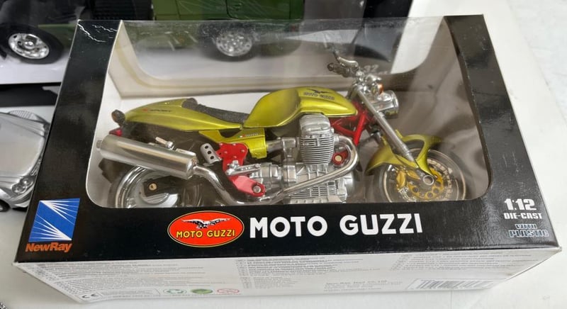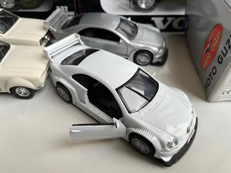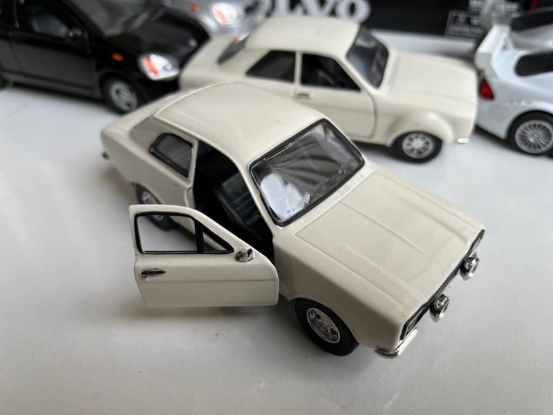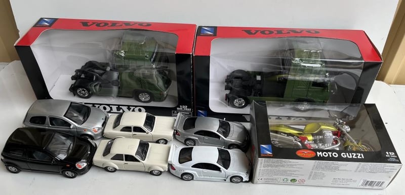 Die Cast Model Cars, Includes 2 X Volvo Semis New in Box, 2 X Ford Escorts, 2 X Toyota, 2 X Mercedes, 1 Motorcycle new in box SOLD AS 1 LOT