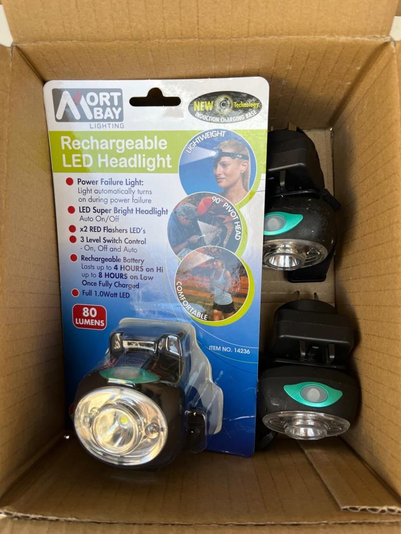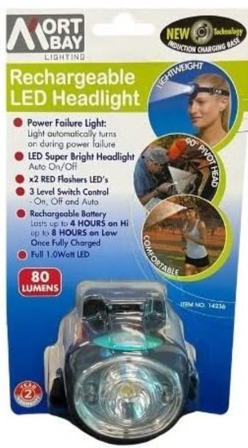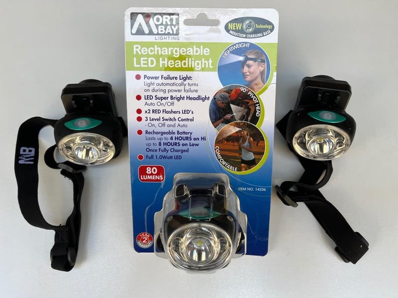 3 X Rechargeable Head Torch, Wireless Wall Charger, 4 Mode, Bright, Powersaver, Flash, RED LED SOLD AS 1 LOT